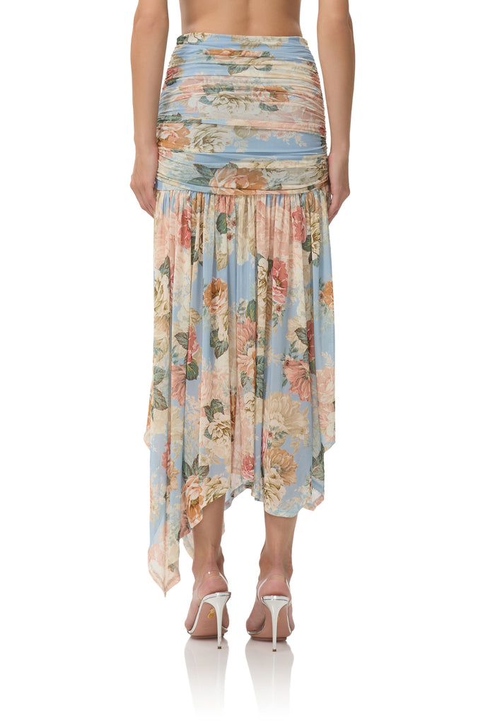 Meet the new Estella Skirt, a statement silhouette with all over ruching at the waist and a flowing handkerchief hem. Designed for versatile styling, it pairs perfectly with the new Dido Top in Soft Slate Bloom print.