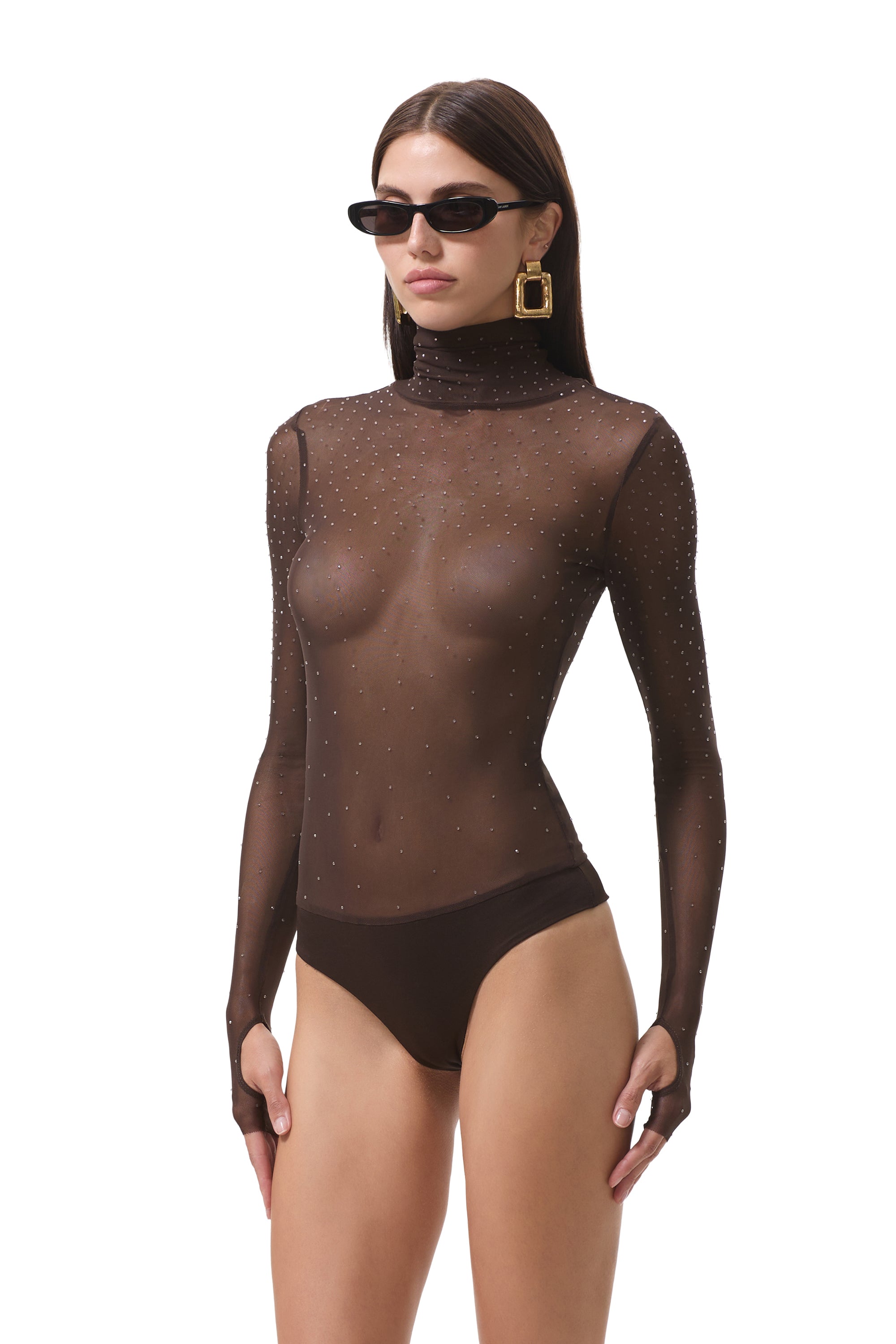 Back for fall, the Milo Bodysuit is refreshed in our new dew drop mesh fabrication. Designed with sheer mesh, a chic turtleneck neckline, and thumbhole sleeves for a street-style finish, Milo is your must have bodysuit this fall.