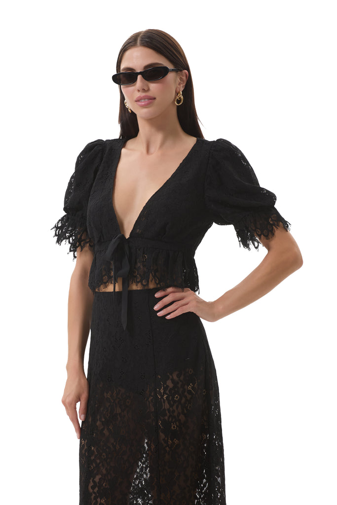 Romantic and effortlessly timeless, the Wayla Top is a love letter to femininity. Featuring a delicate front tie that creates a graceful blouson silhouette, it's finished with cascading lace trim for an ethereal touch. Pair it with the matching Oxford Skirt for a beautifully coordinated look.
