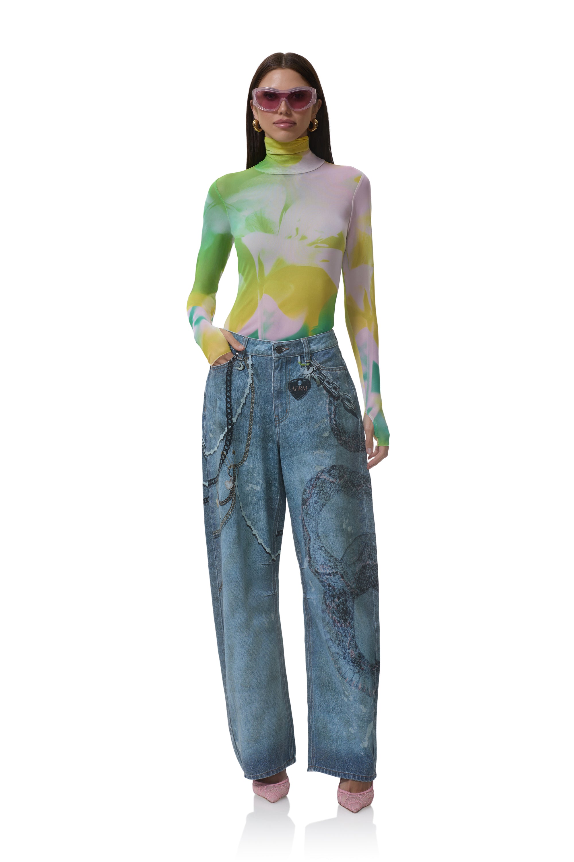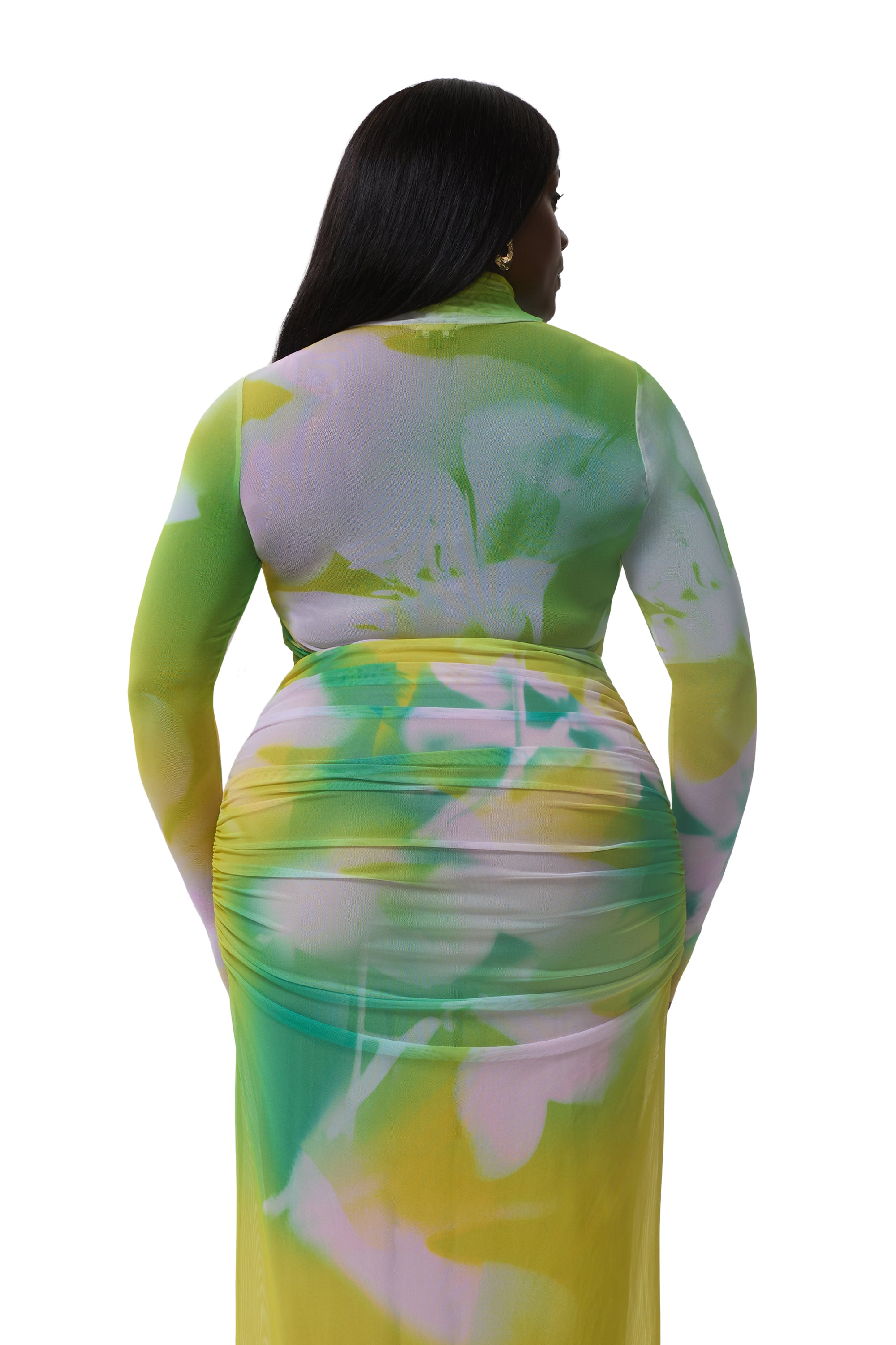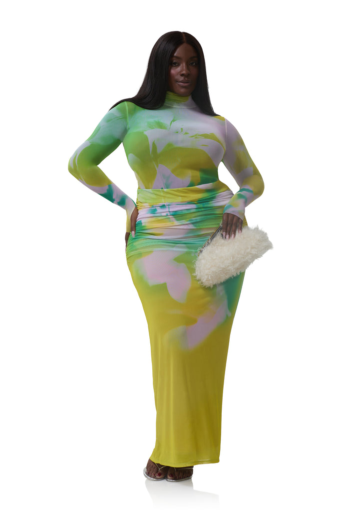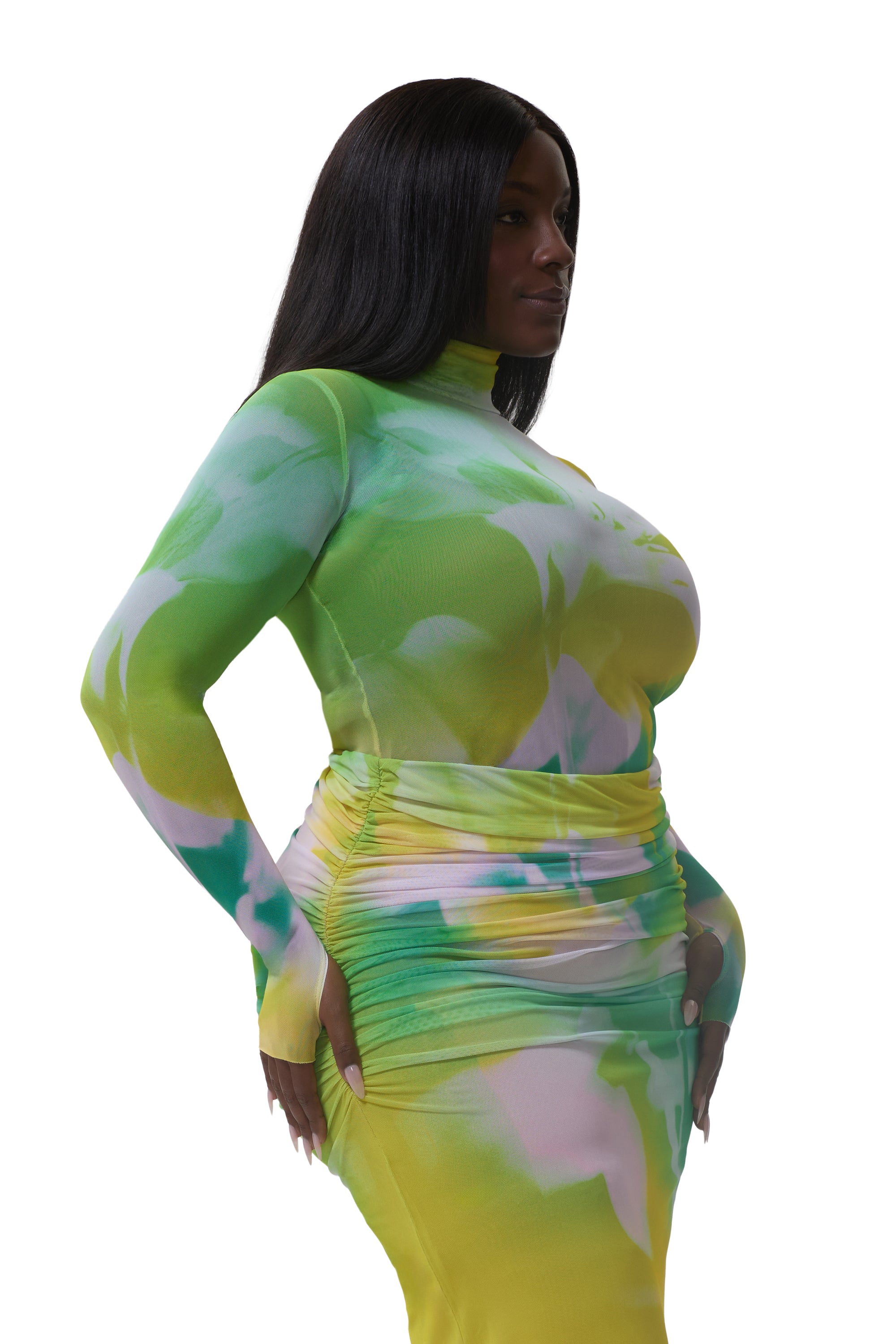The Zadie top features a sheer mesh material and street-style thumbholes that lend an edgy update to off-duty style. She comes in Sunblur Blossom.
