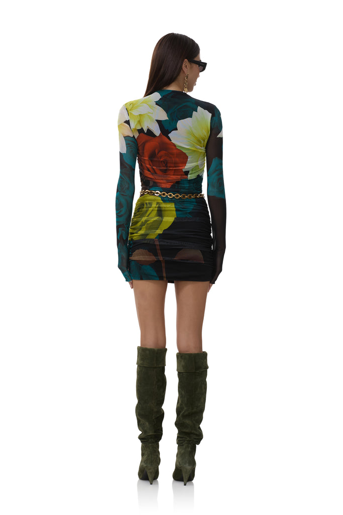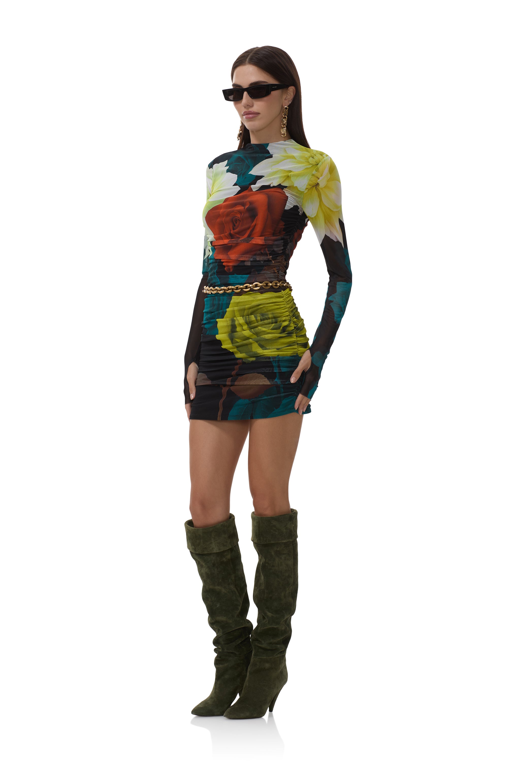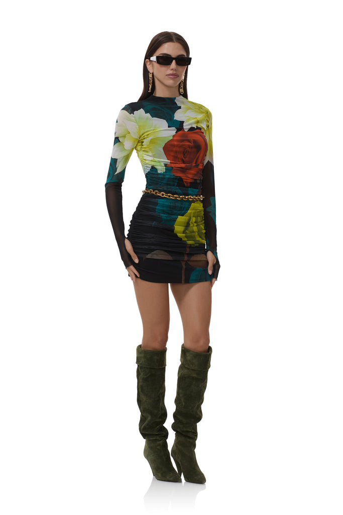 Be the moment with the Darcie Mini Dress in Citron Blossom. This body hugging silhouette finds balance through its sleek, yet flattering fit, while featuring side ruching that is sure to turn heads.