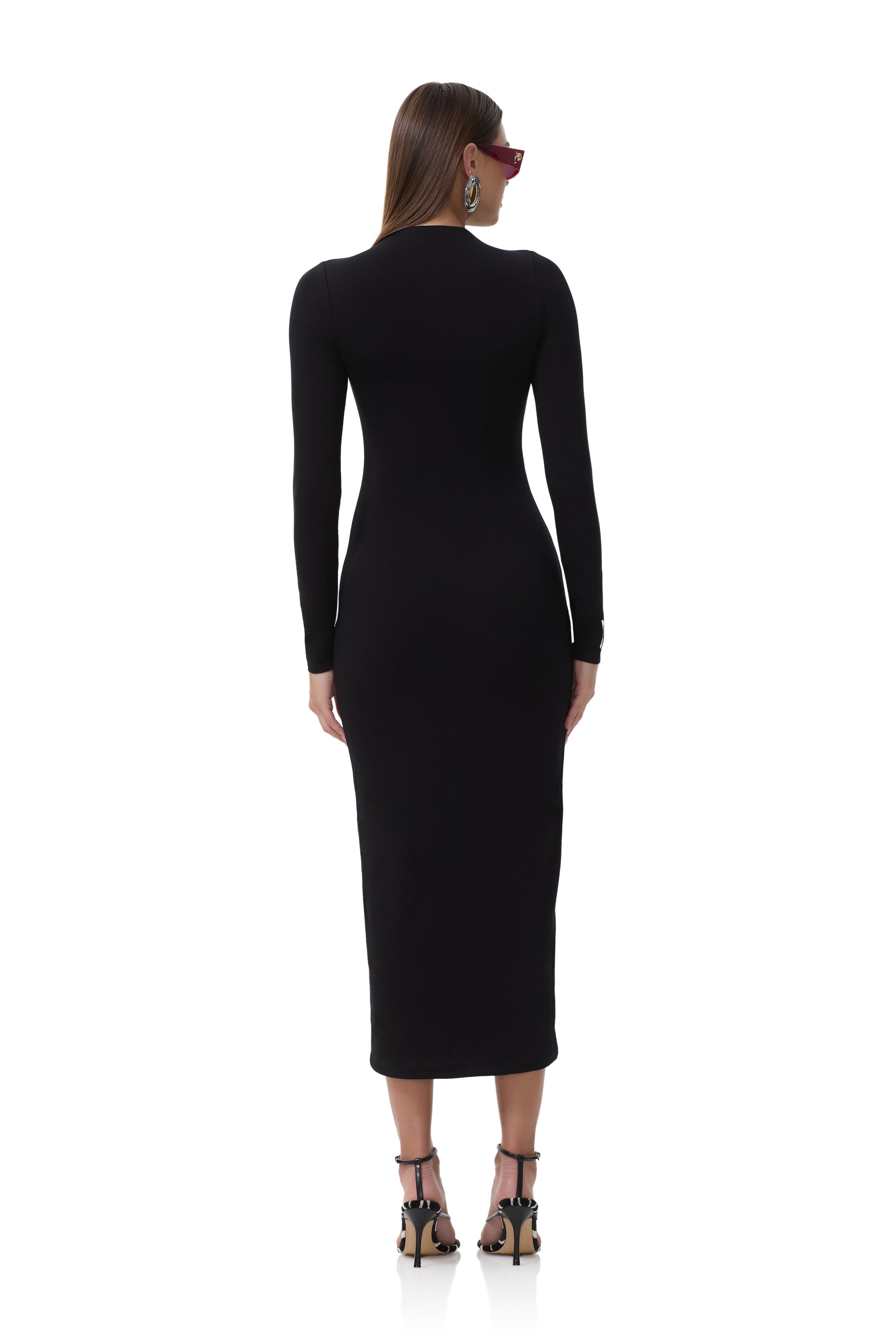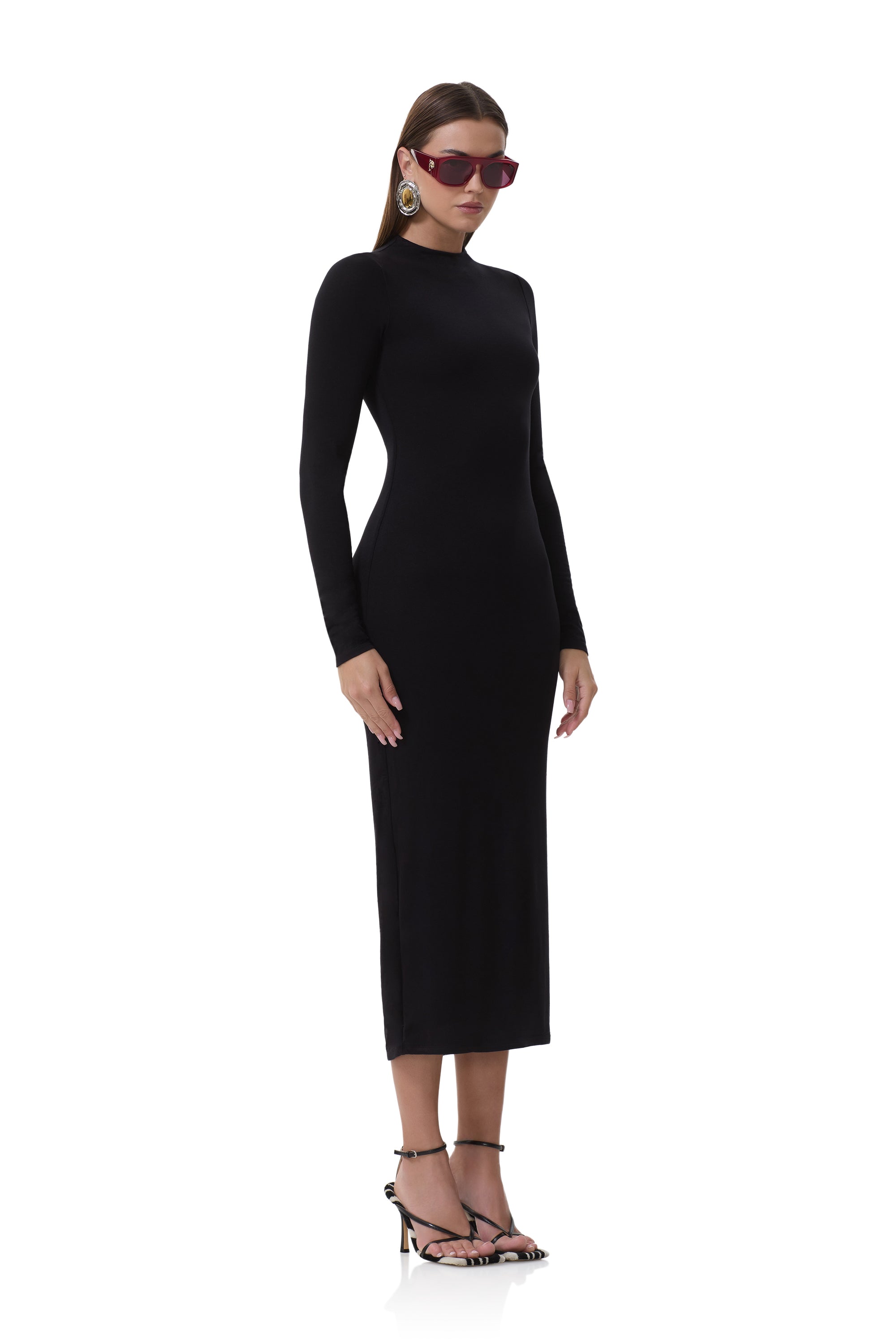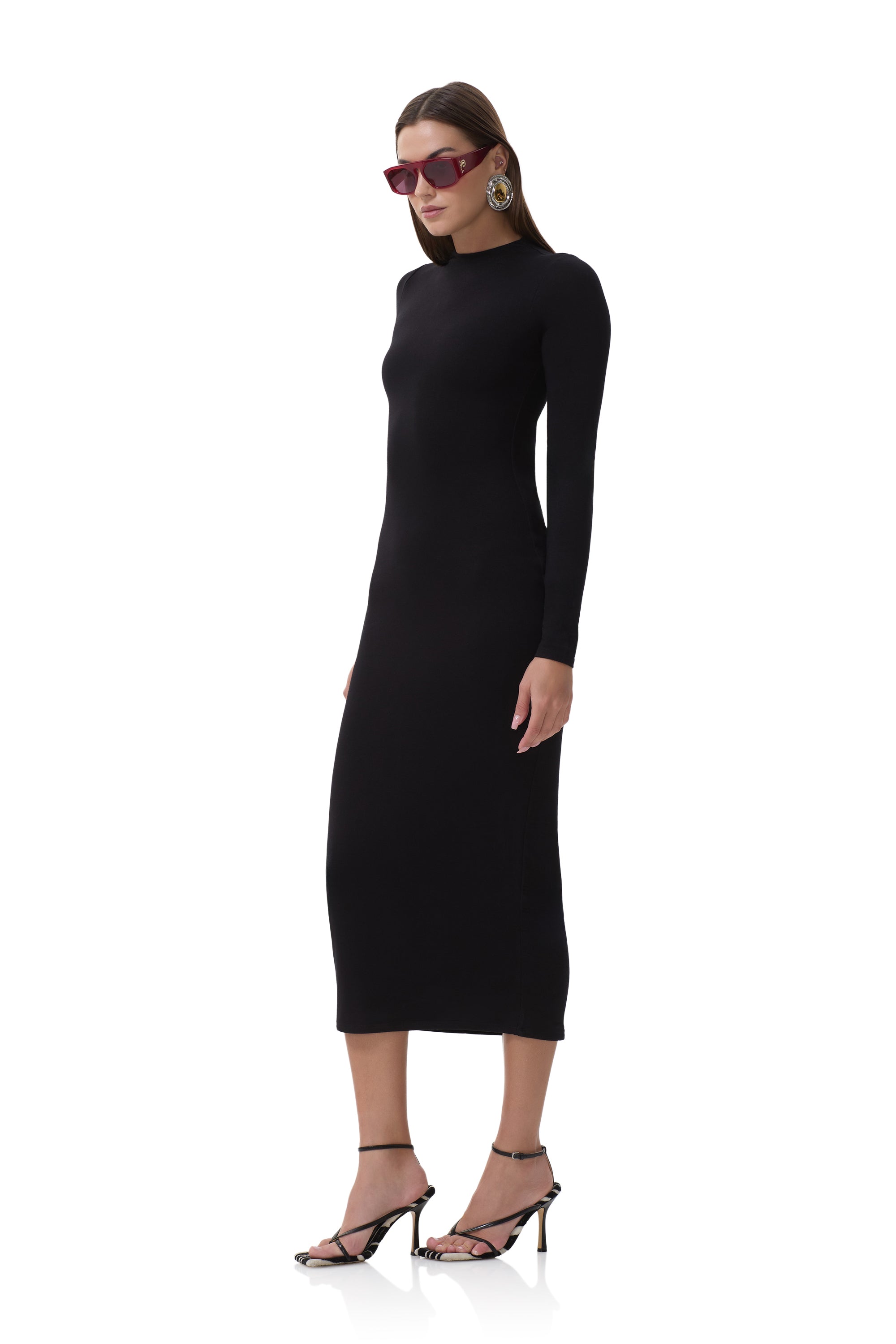 The best selling Juniper midi dress features a body hugging silhouette with clean lines and mock neck. She comes in a soft knit crepe fabrication with an effortless fit makes this dress an closet staple. She comes in Noir.