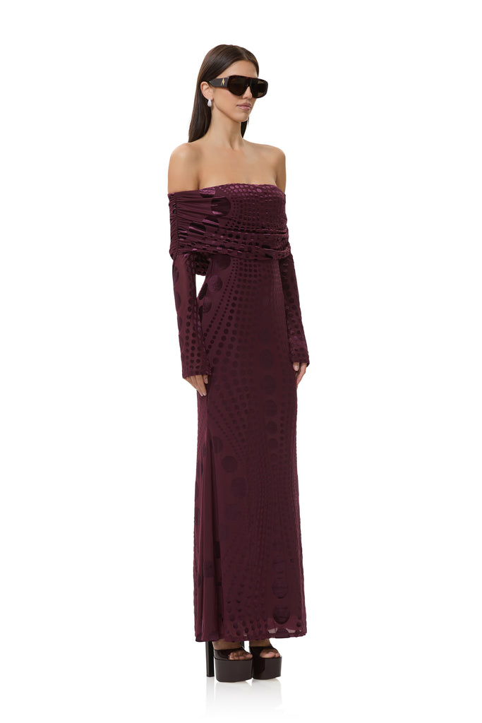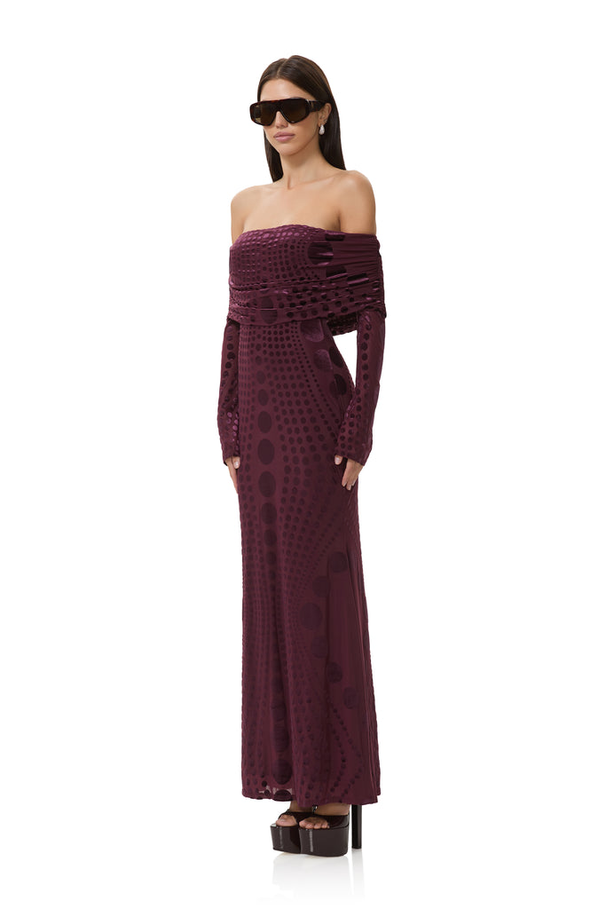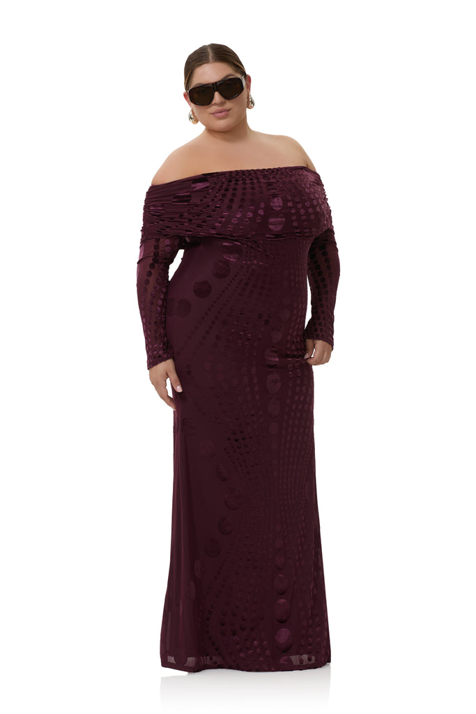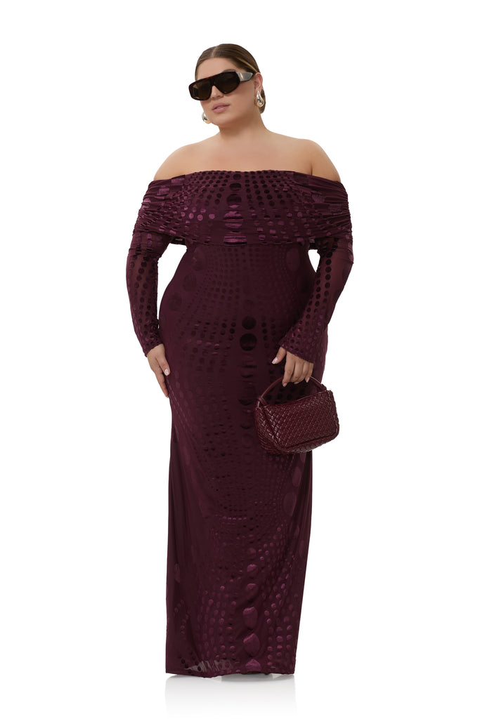 Our best seller for a reason, Thelma returns this holiday season in our newest fabrication, luxurious burnout velvet. With long sleeves, gathered detailing, and an effortless off the shoulder silhouette, she brings bold, feminine beauty to every moment.