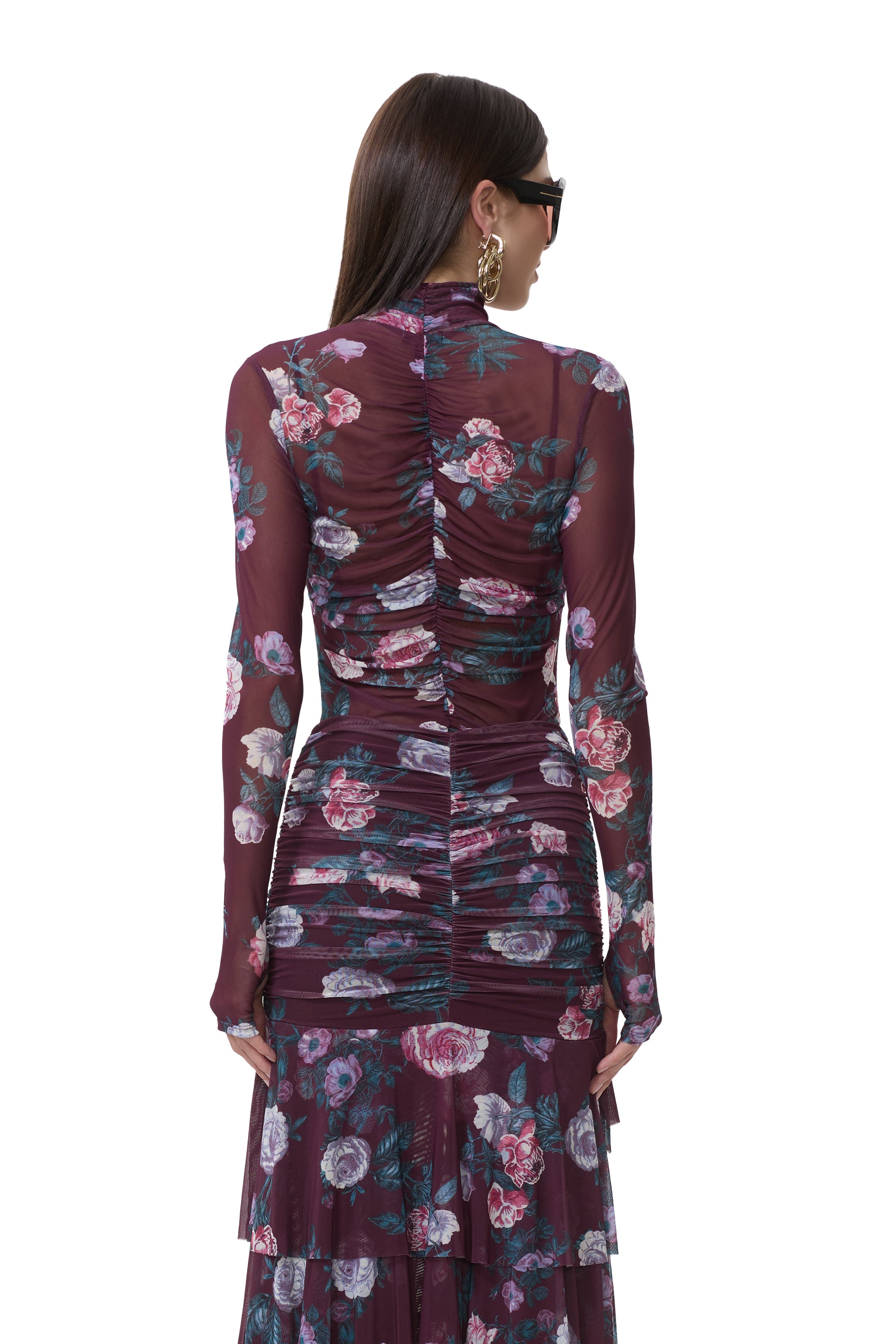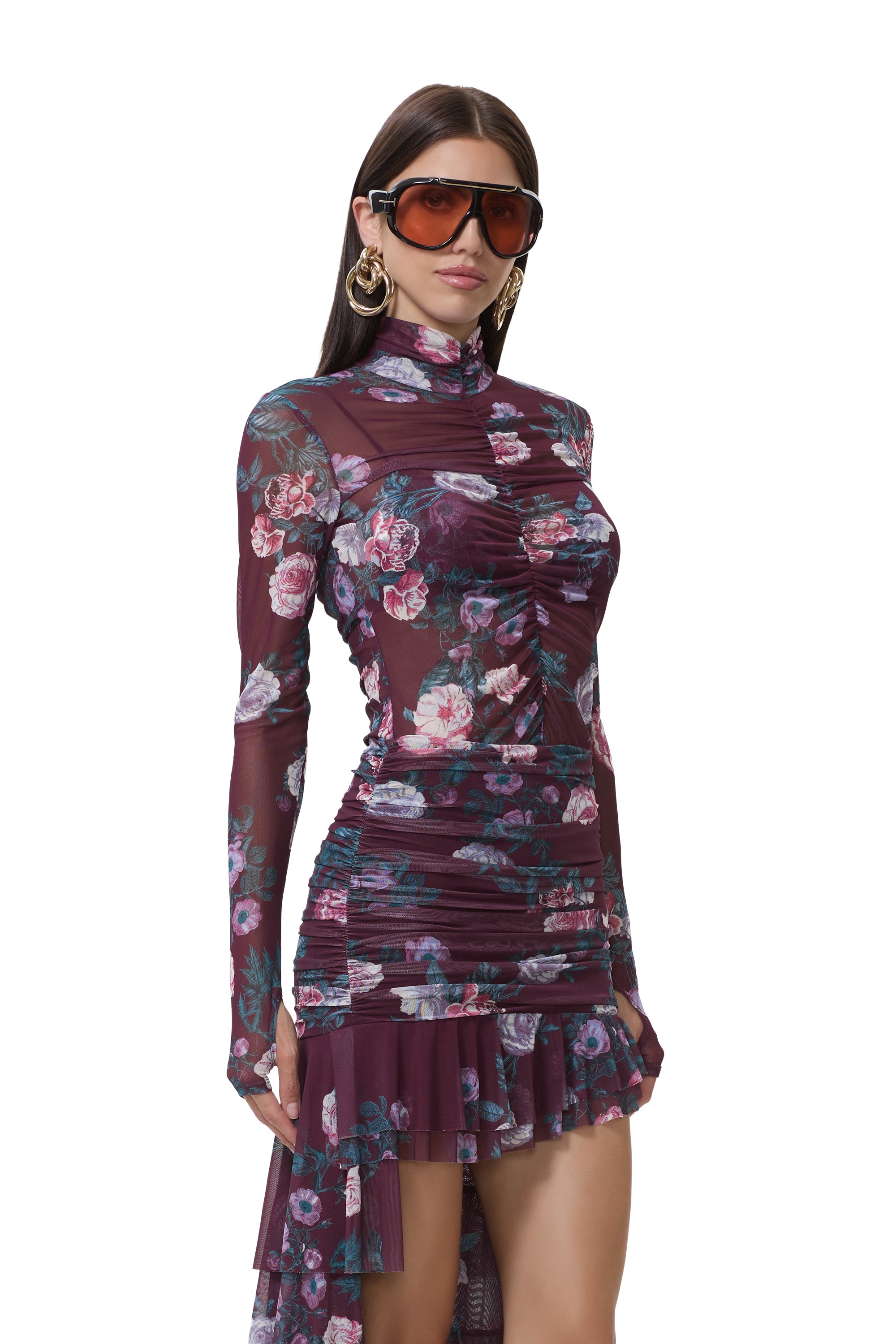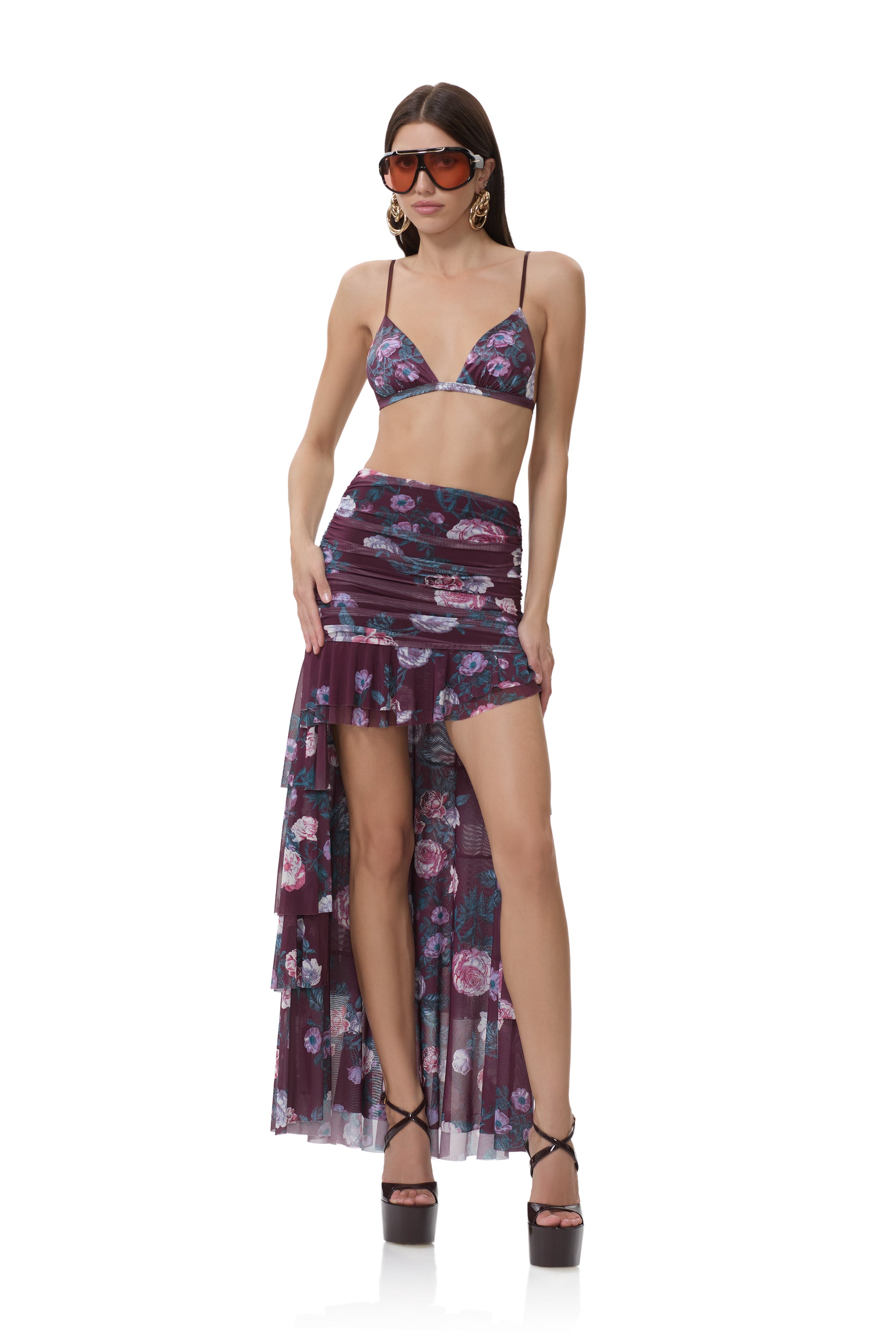 Introducing the Rubi Top, effortlessly bold and undeniably chic. Designed with a mock neckline, flattering center ruching, and bold thumbhole sleeves, she brings a modern edge to a feminine silhouette. She comes in our newest Cab Bouquet print and includes a separate mesh bra, Rubi pairs perfectly with the Zarin Skirt for a striking matching set.