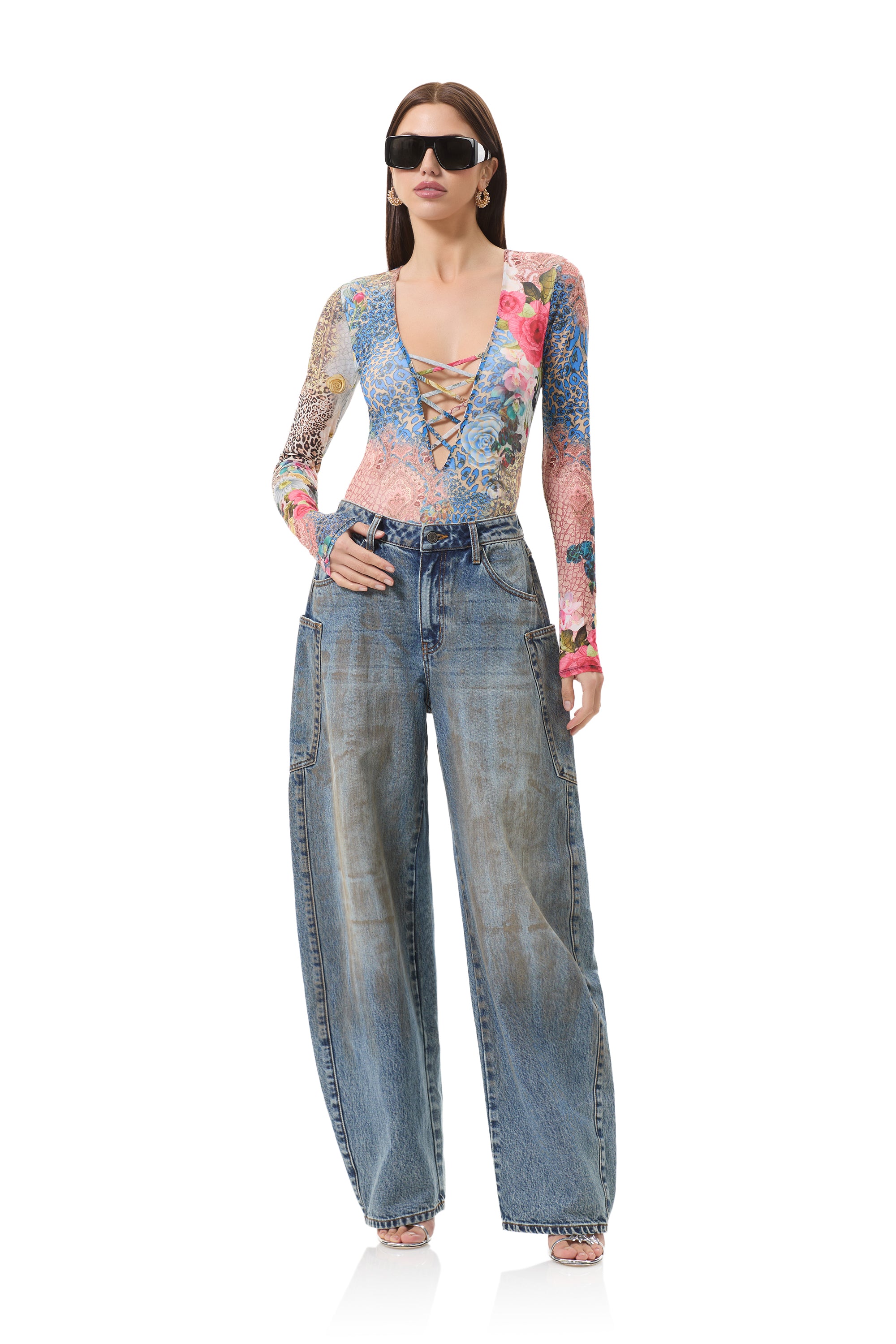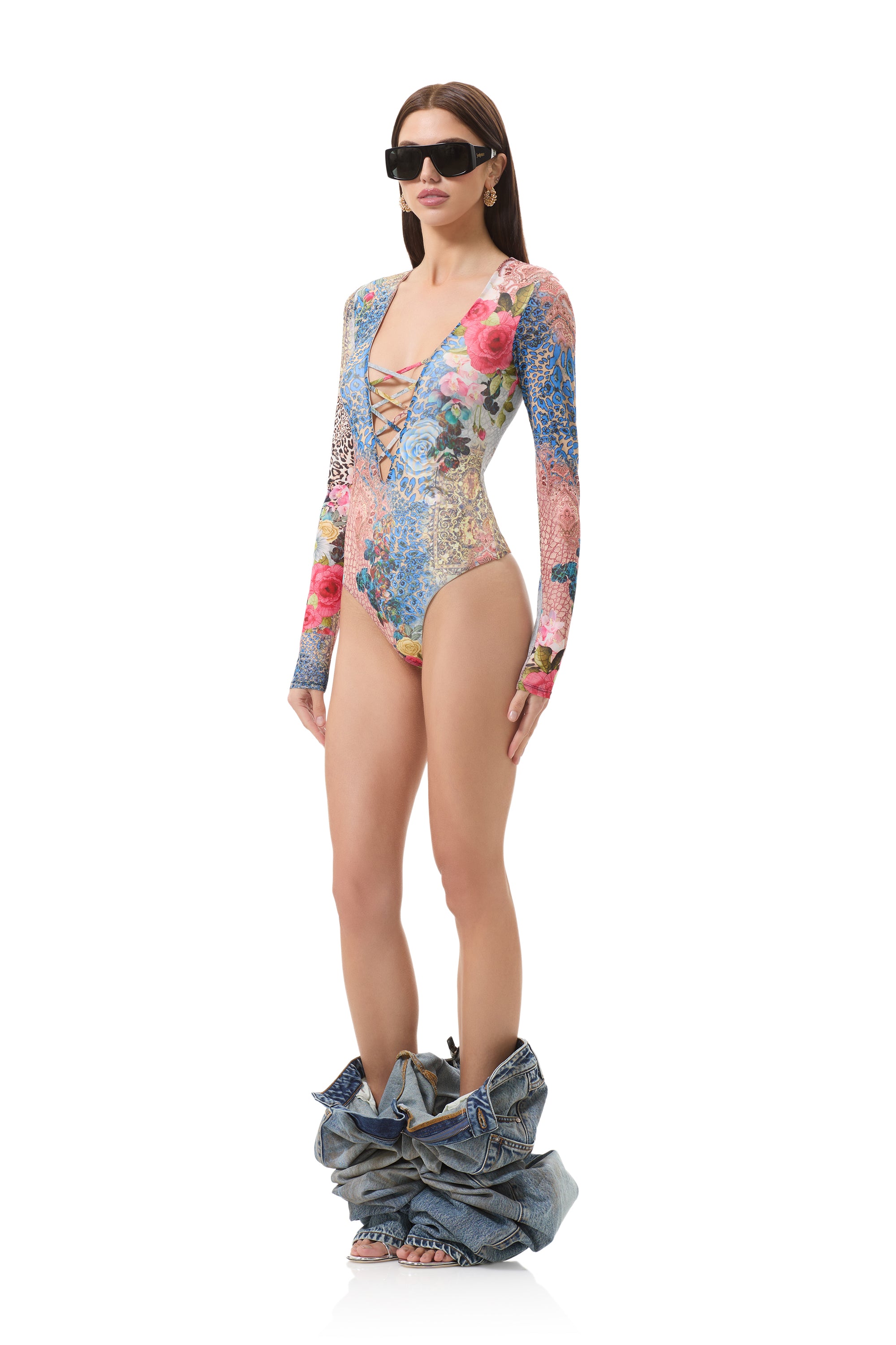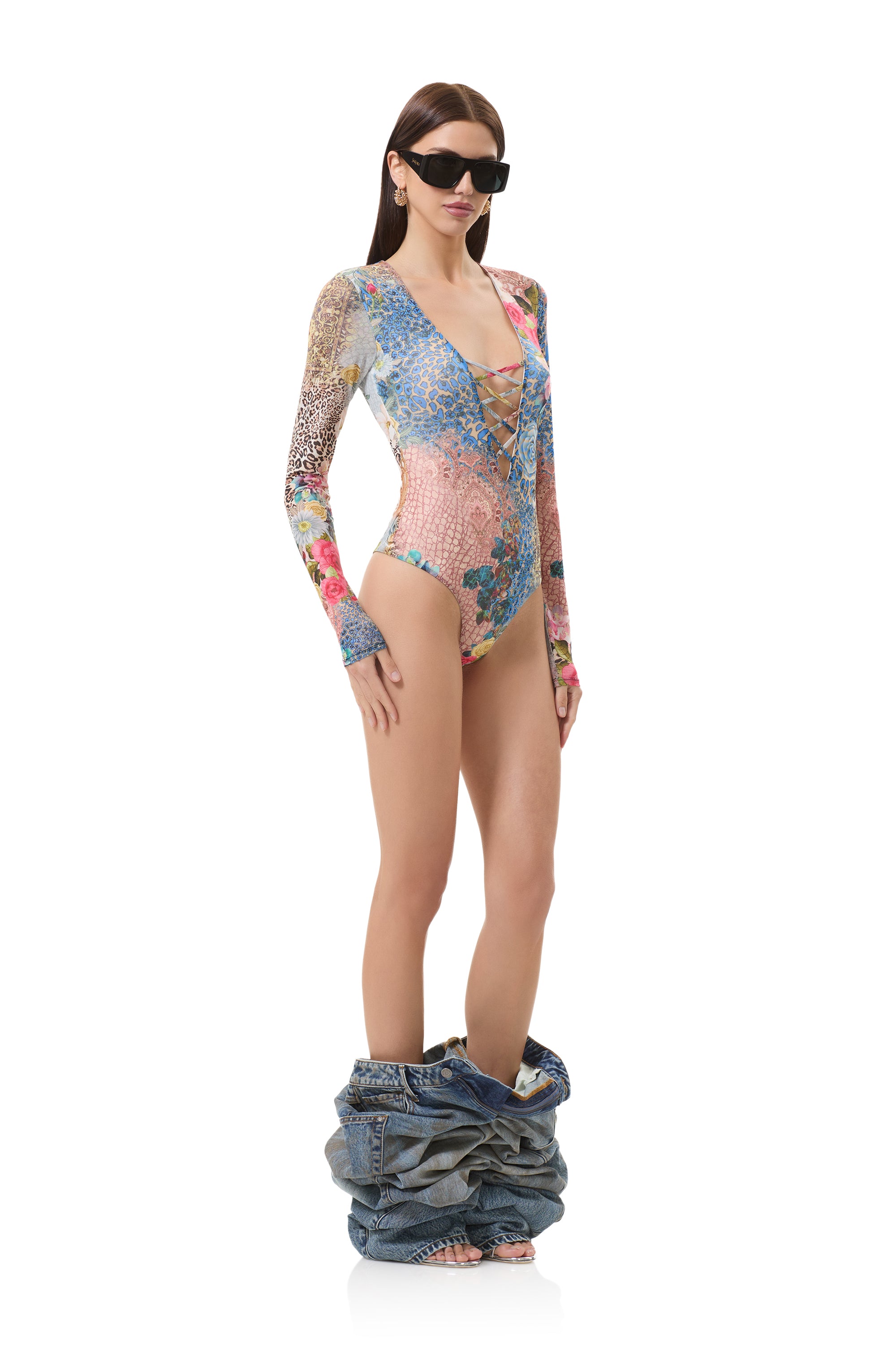 Meet the Eaton Bodysuit, the ultimate blend of daring and chic. Designed with a deep plunge neckline and faux lace up accents, it brings a fresh take on sultry sophistication. Effortlessly versatile, it pairs perfectly with your favorite denim or a sleek mini skirt.