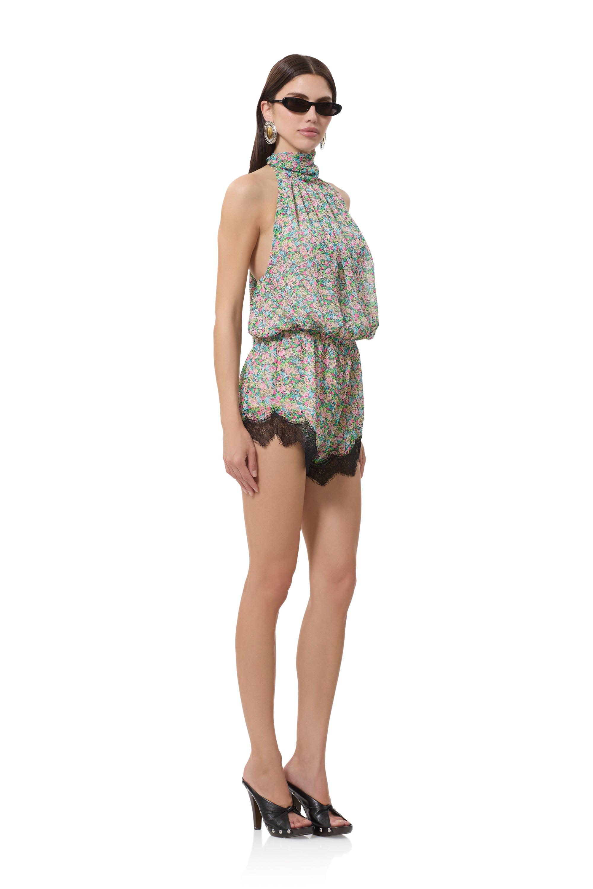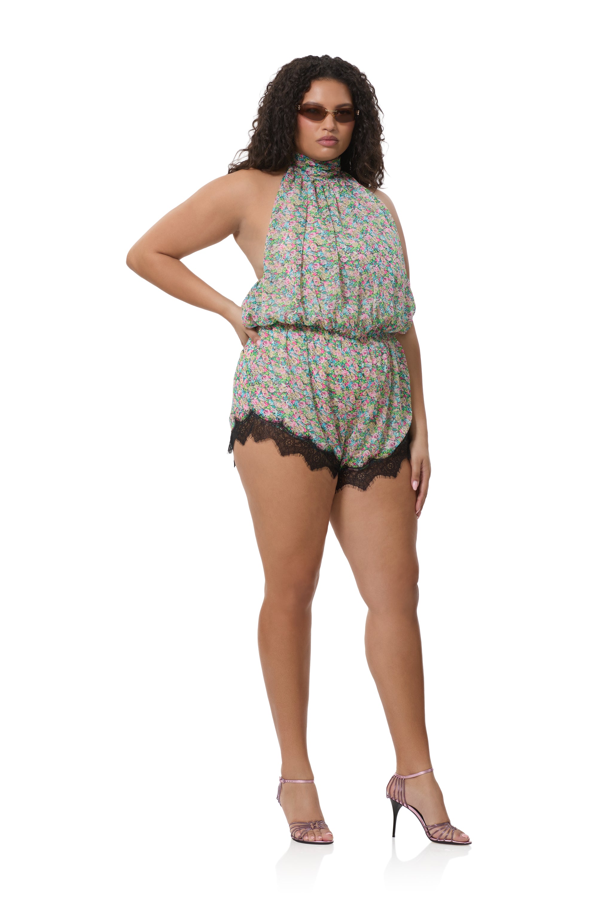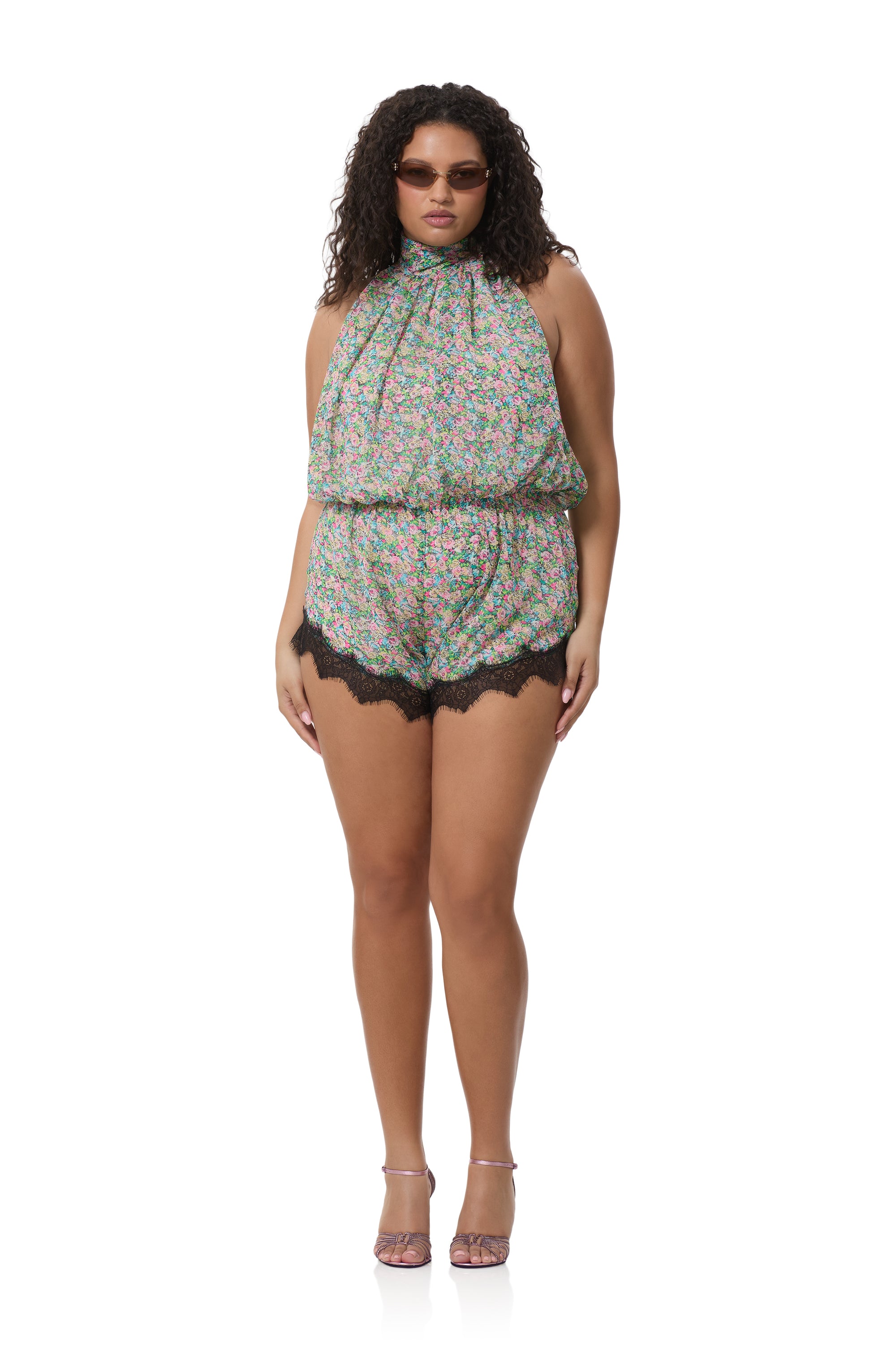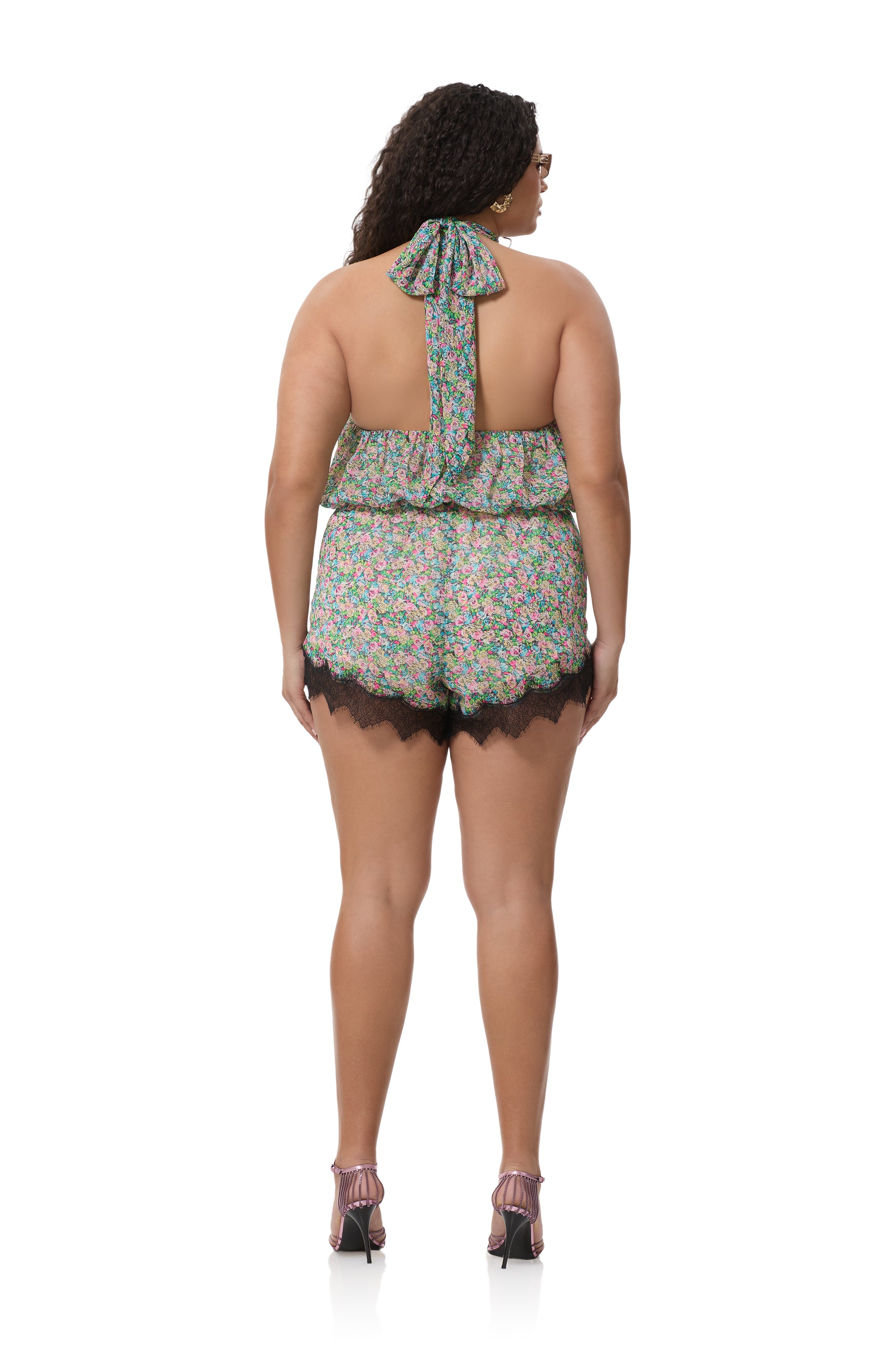 Introducing Logain, the romper made for sunny days and standout moments. Featuring a high neck halter, a relaxed bubble bodice silhouette, and a cinched waist, it flatters every shape while keeping the look breezy and chic. A touch of lace along the hem adds soft, feminine detail for a polished finish.