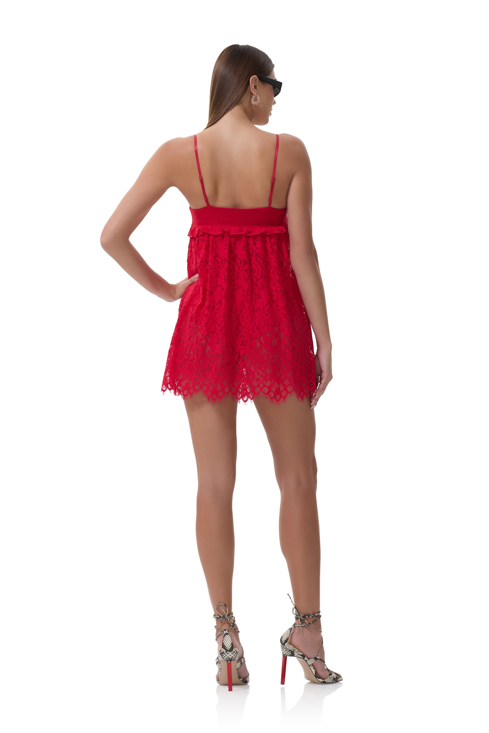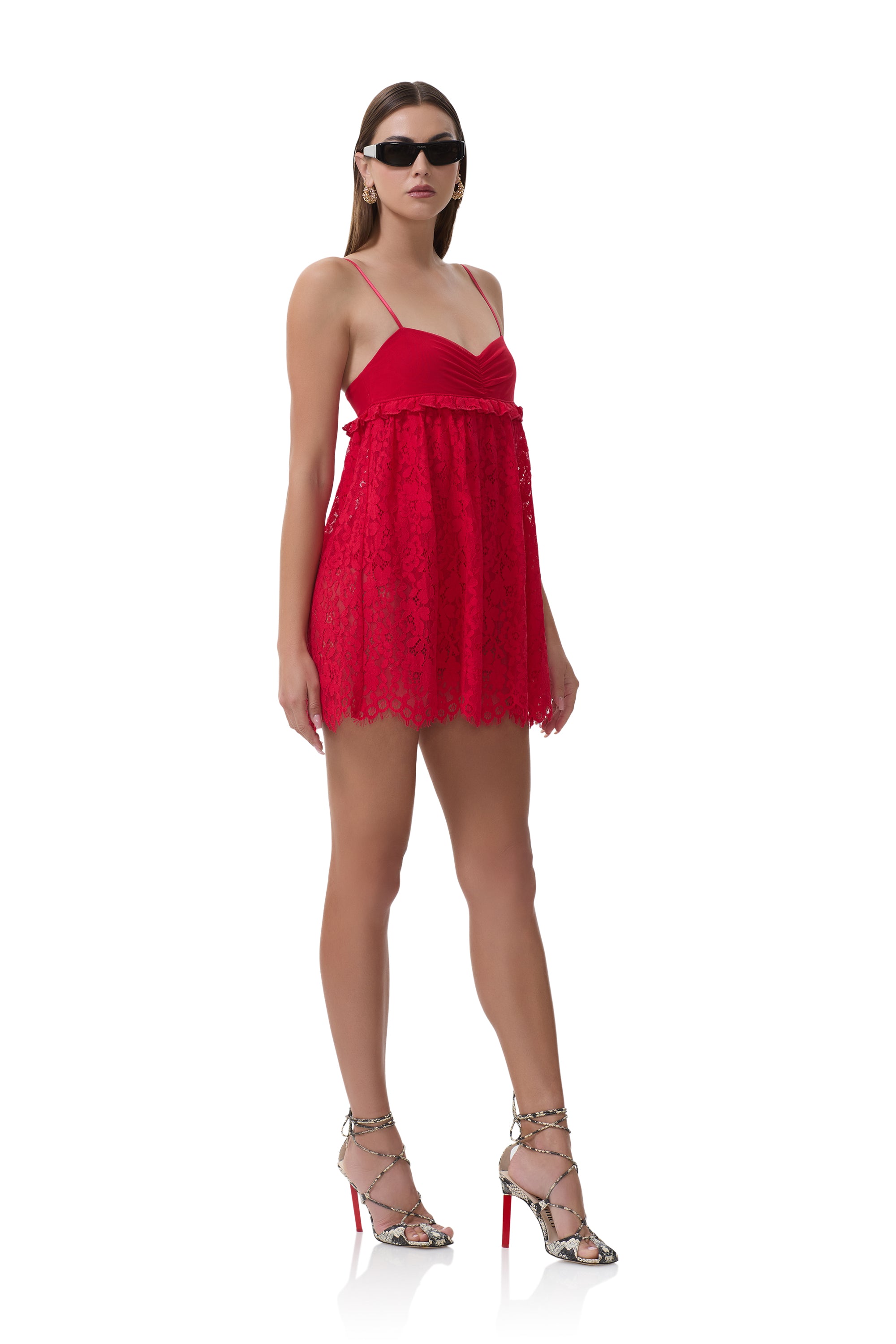 The perfect feminine addition to your wardrobe, the Aria babydoll lace dress is the definition of romantic and edgy. Designed in our femme lace, it features micro ruffles underneath the bust and intentionally sheer on the bottom half, the Aria is not one to forget.