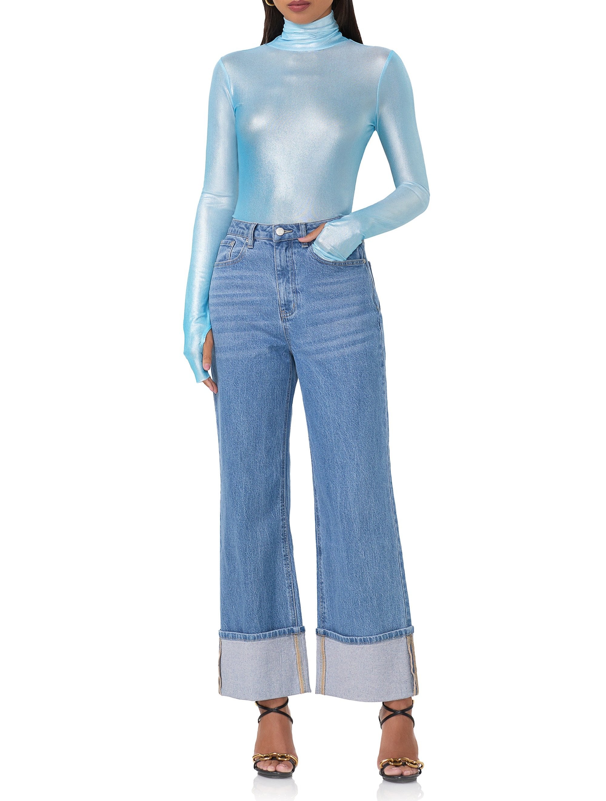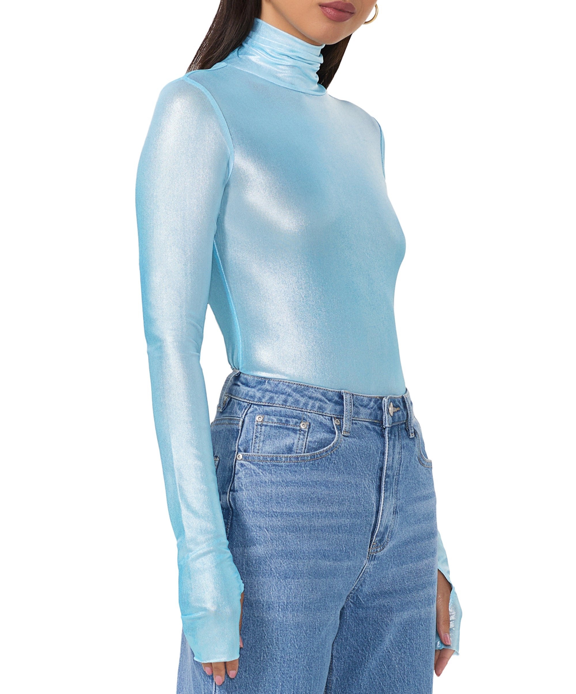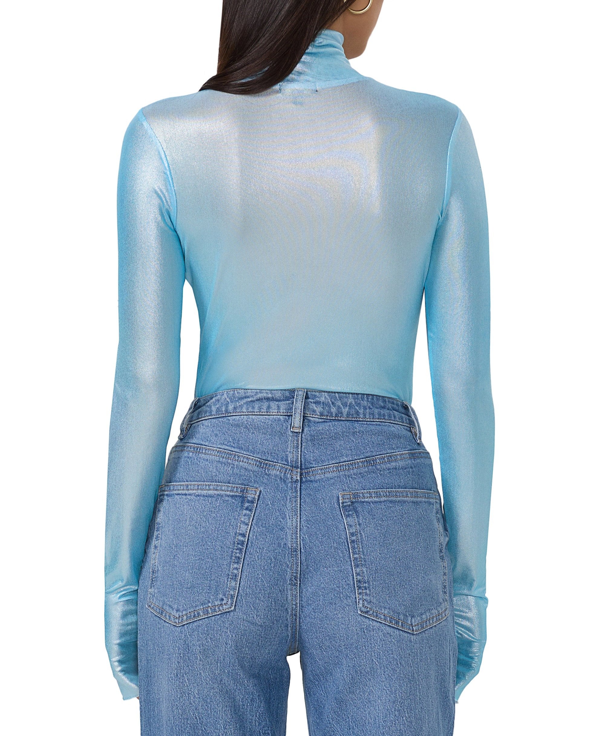 The Zadie top features a sheer mesh material and street-style thumbholes that lend an edgy update to off-duty style. She comes in Bluefish Ombre.