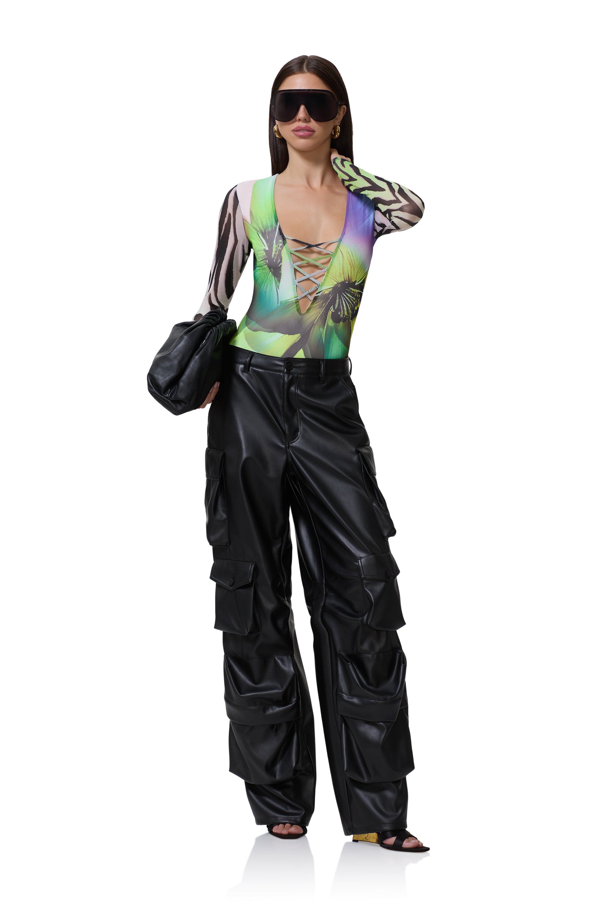 Meet the Eaton Bodysuit, the ultimate blend of daring and chic. Designed with a deep plunge neckline and faux lace up accents, it brings a fresh take on sultry sophistication. Effortlessly versatile, it pairs perfectly with your favorite denim or a sleek mini skirt.