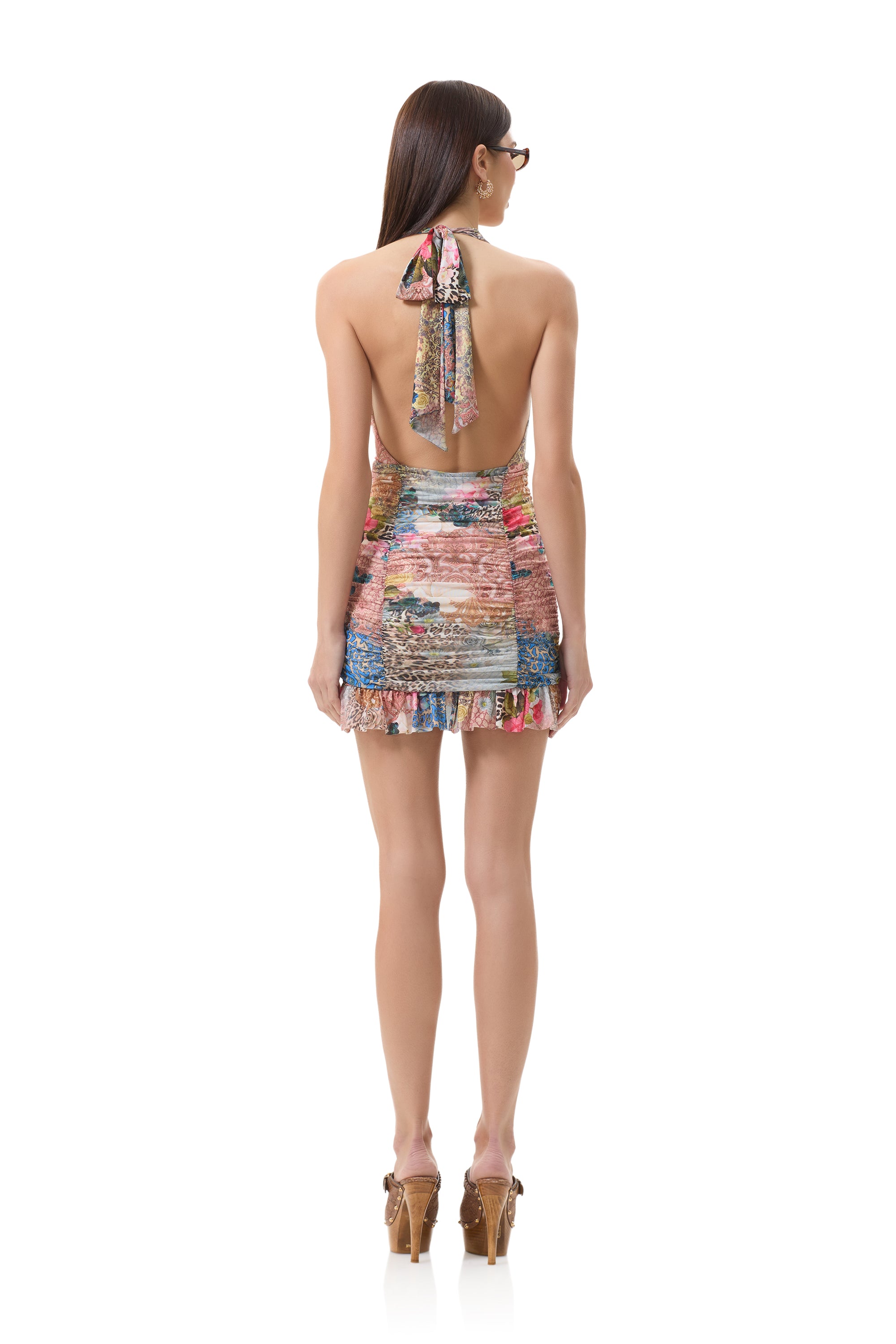 Make a statement in the Mel Mini Dress, crafted with a romantic halter neckline, all-over ruching, and a sweeping ruffle that flatters every angle. Finished in our vibrant Iris Patchwork print, she’s made to be noticed.