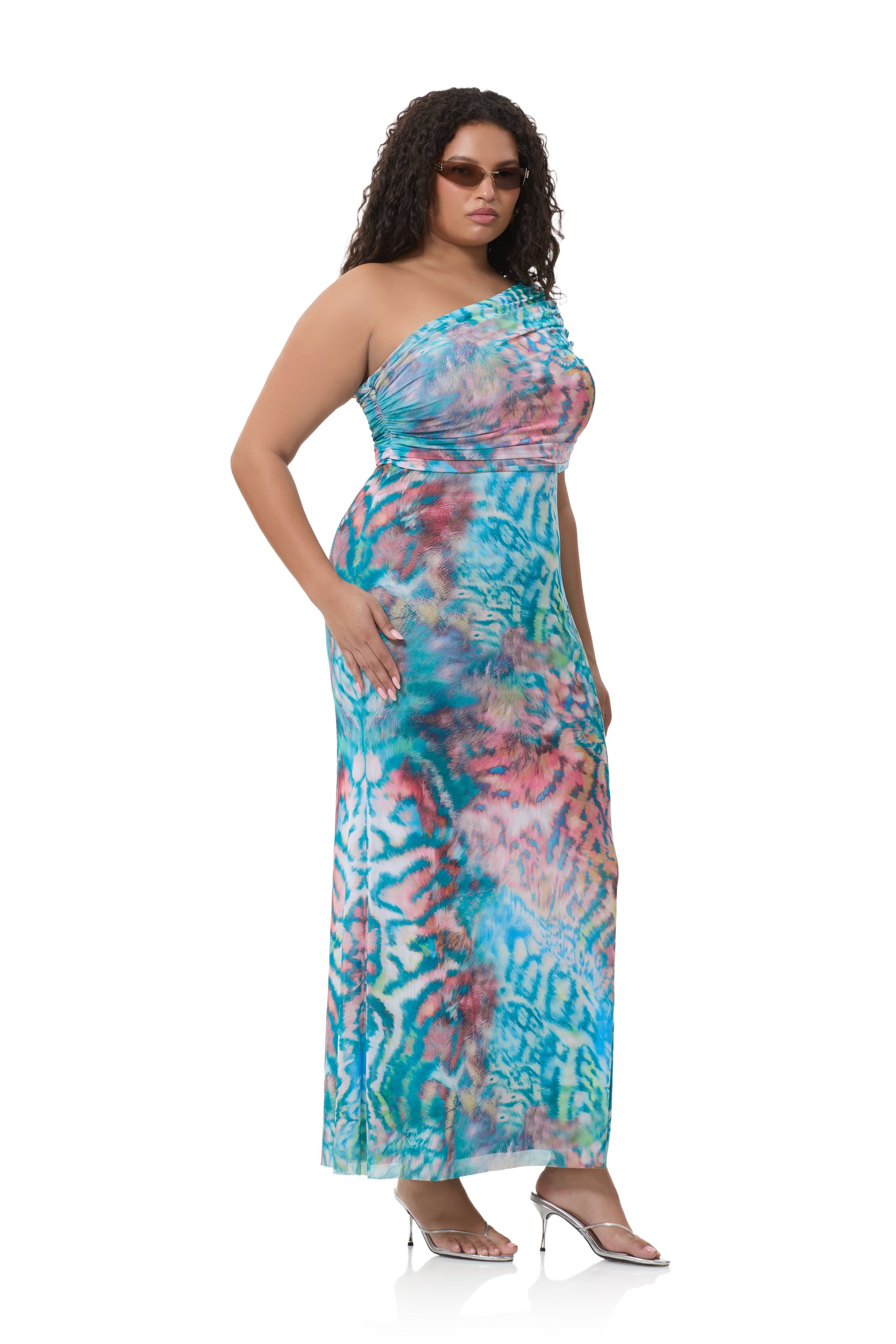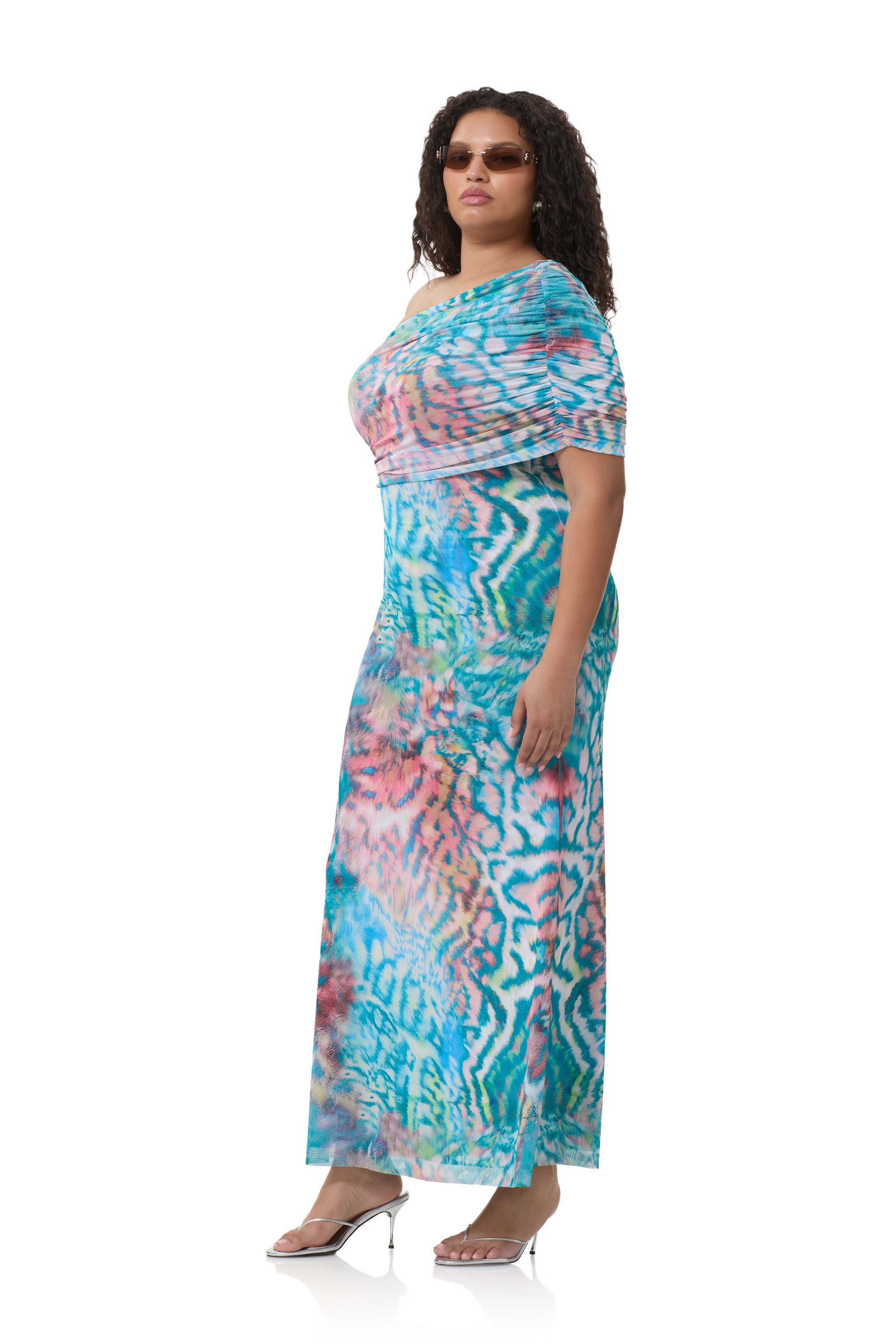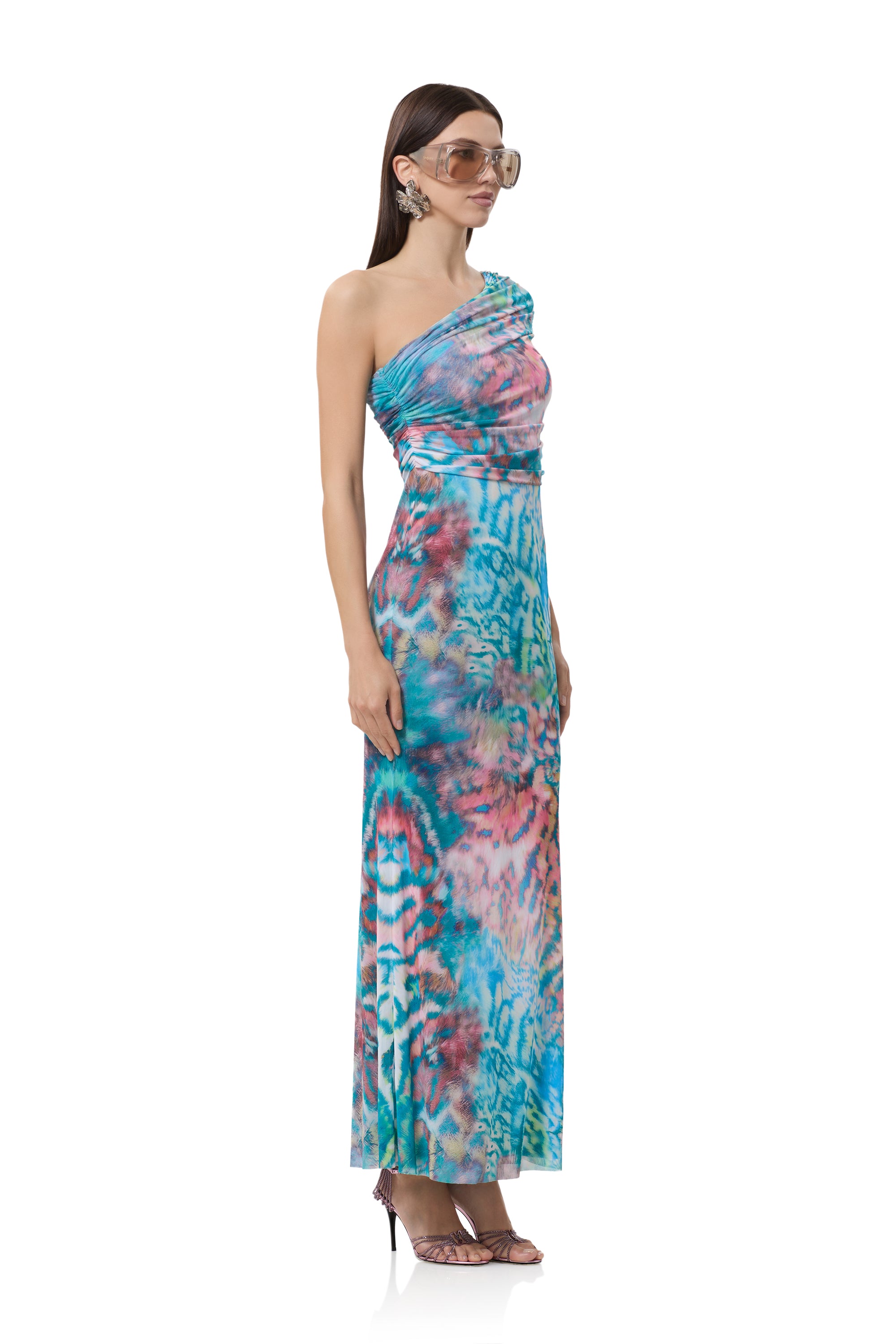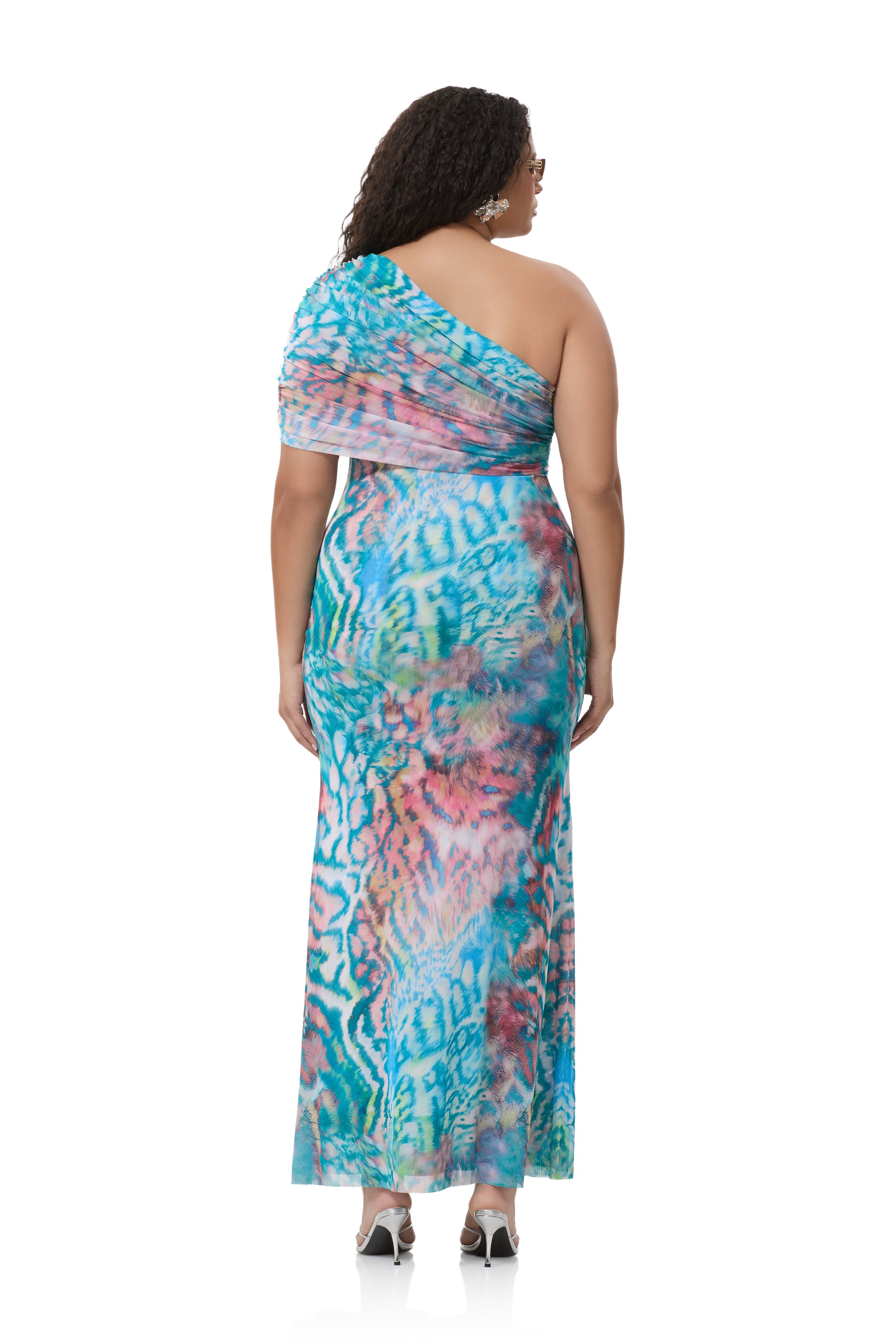 A bold new silhouette destined for icon status, introducing the Mirabel. Defined by its asymmetrical one shoulder neckline and delicate draping shoulder detail, this fluid maxi silhouette makes a bold statement in our newest Pastel Animal placement print.