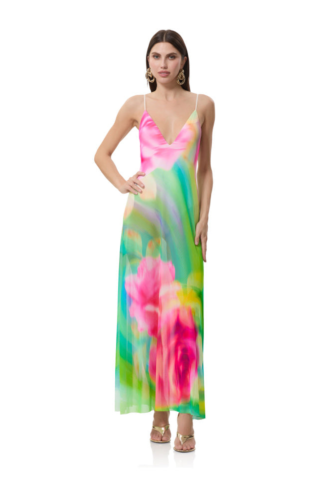 Fall in love with romance redefined. The Rivka Dress captures the season’s feminine spirit with a flowing maxi silhouette, full sweep skirt, and smooth bodysuit lining for a flawless fit. Designed in our newest Green Rose placement print, she’s the perfect blend of elegance and allure for every occasion.