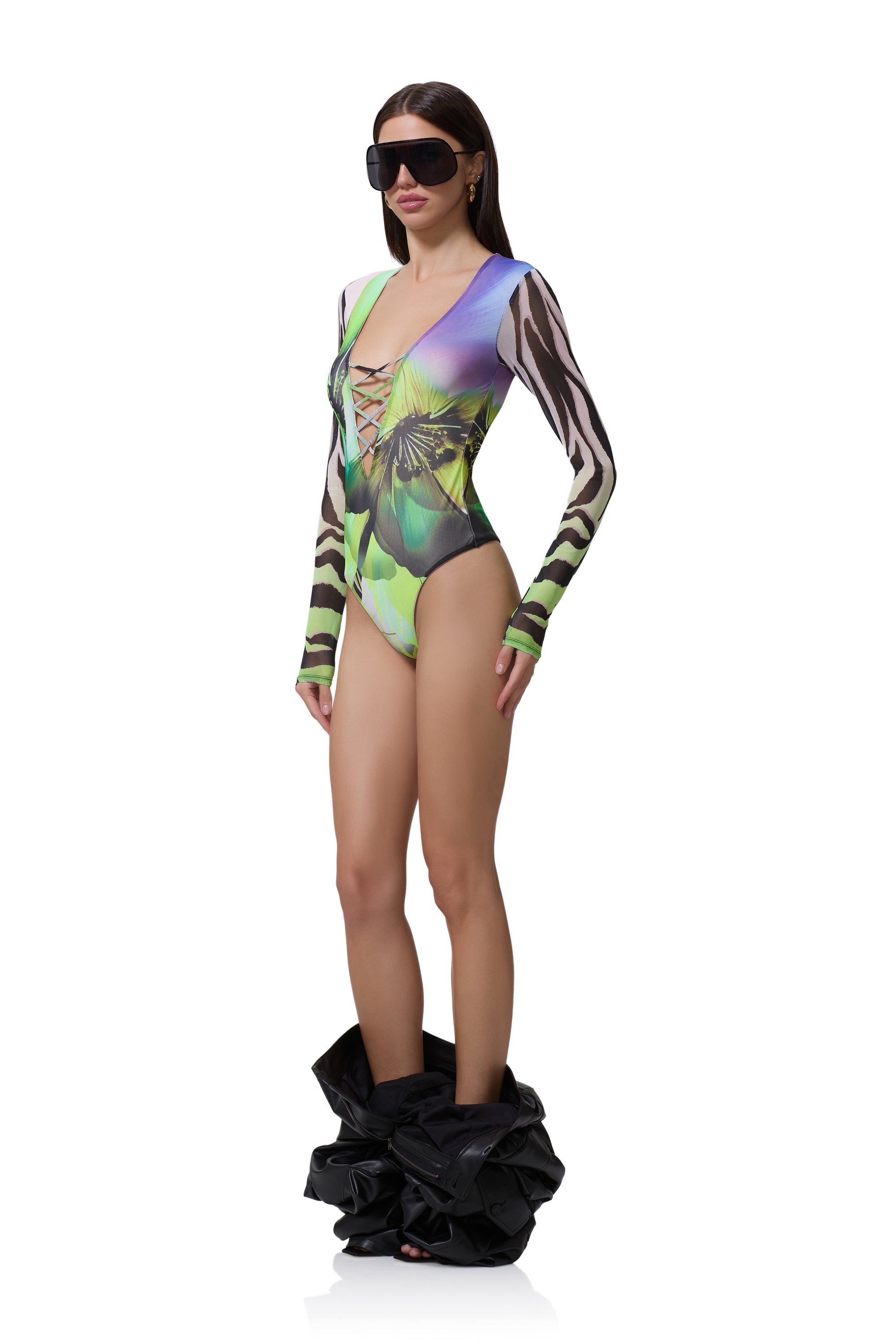 Meet the Eaton Bodysuit, the ultimate blend of daring and chic. Designed with a deep plunge neckline and faux lace up accents, it brings a fresh take on sultry sophistication. Effortlessly versatile, it pairs perfectly with your favorite denim or a sleek mini skirt.
