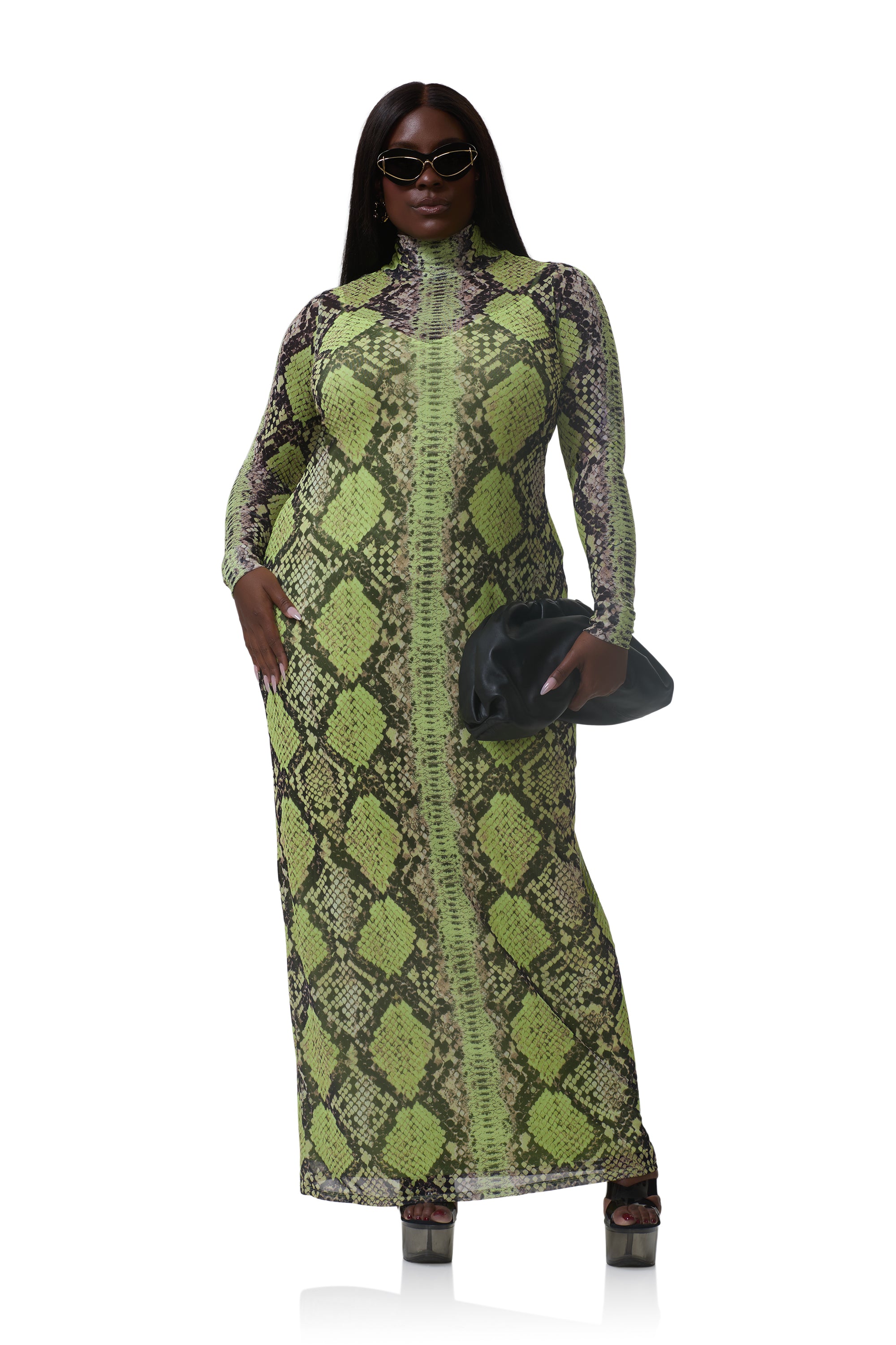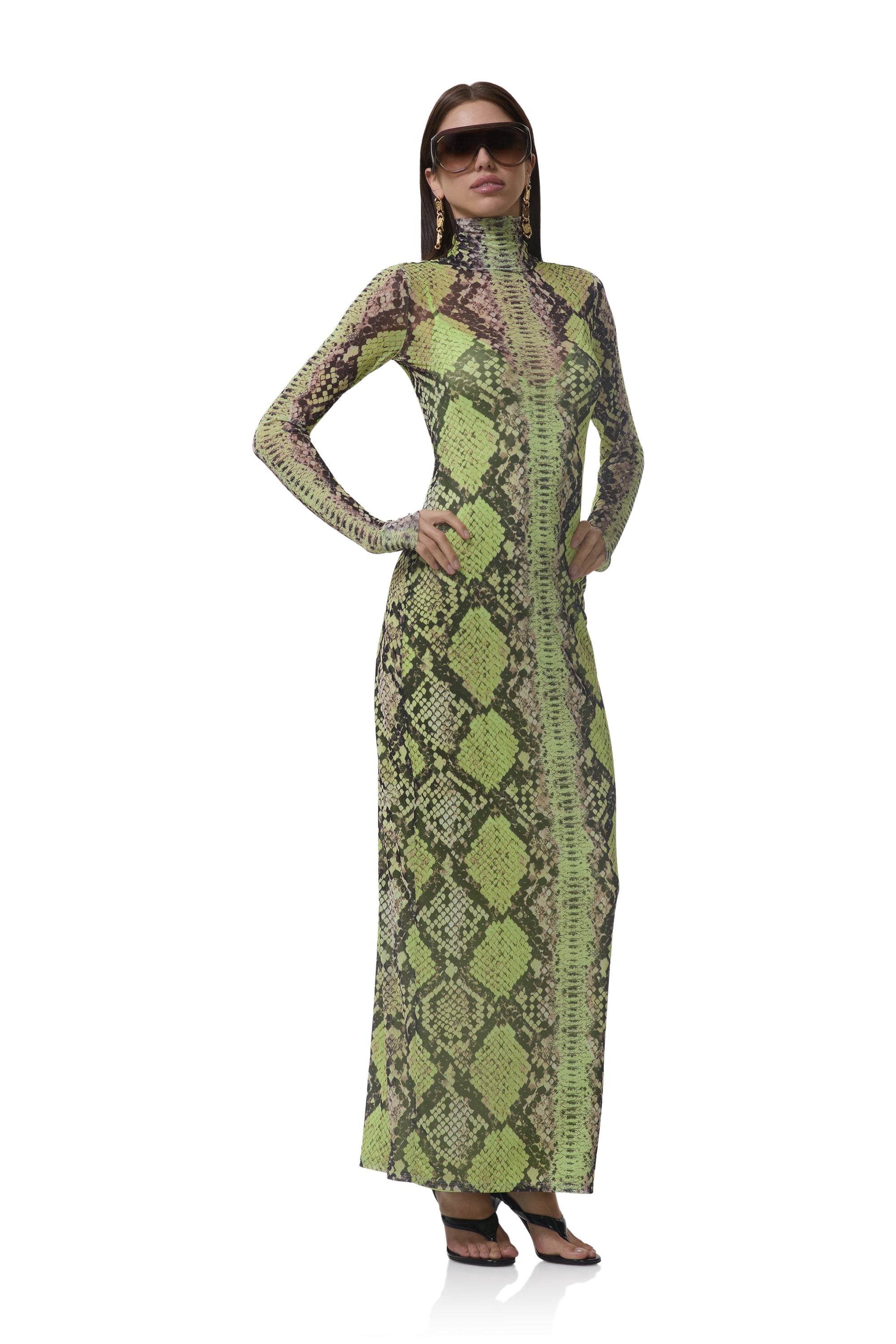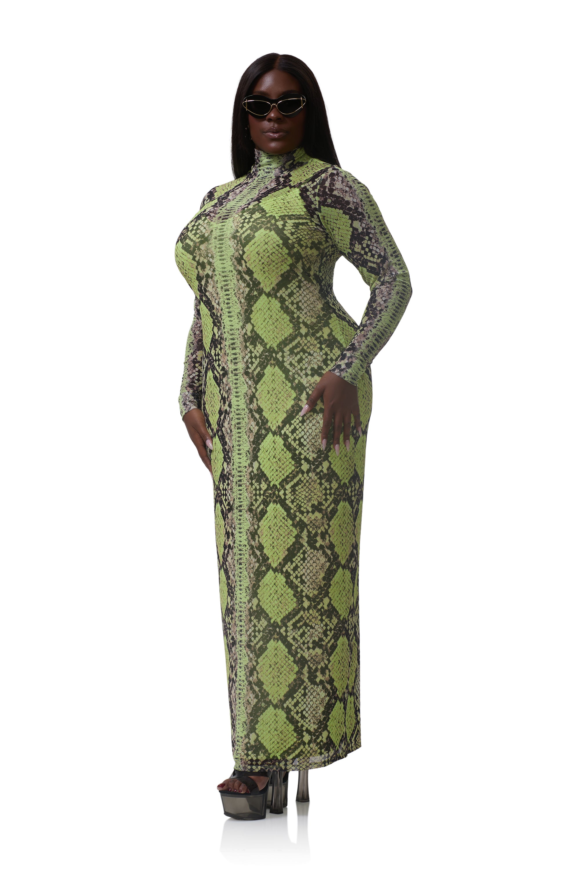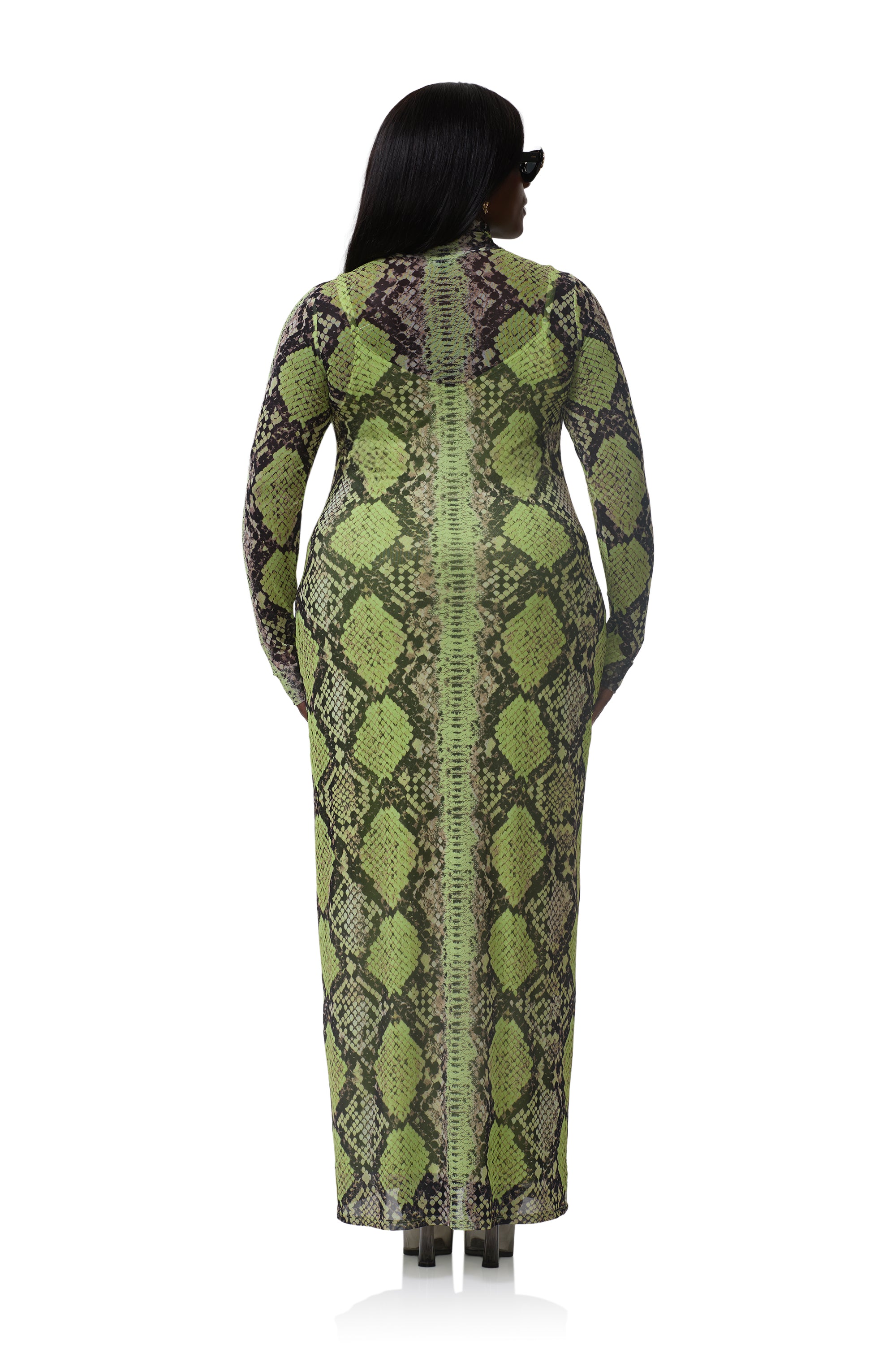 The Billie Dress is back and better than ever. Crafted in sheer power mesh and adorned with our new Lime Snake print, she’s designed in an effortless column fit with a sleek mock neck and flattering maxi silhouette. A true wardrobe essential, Billie transitions seamlessly from day to night with timeless versatility.