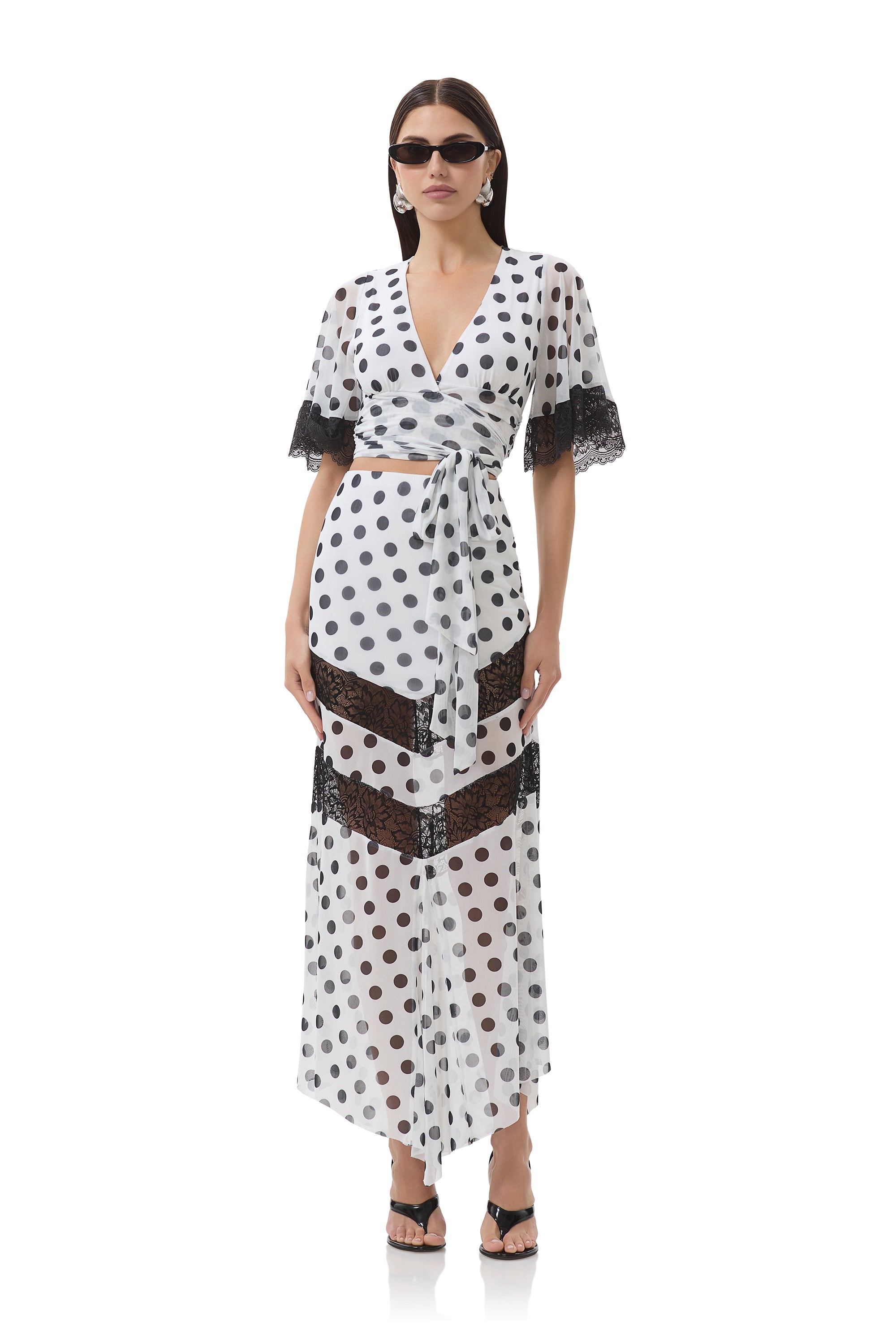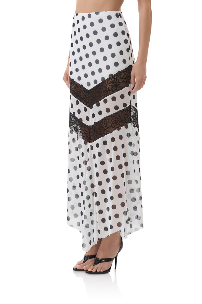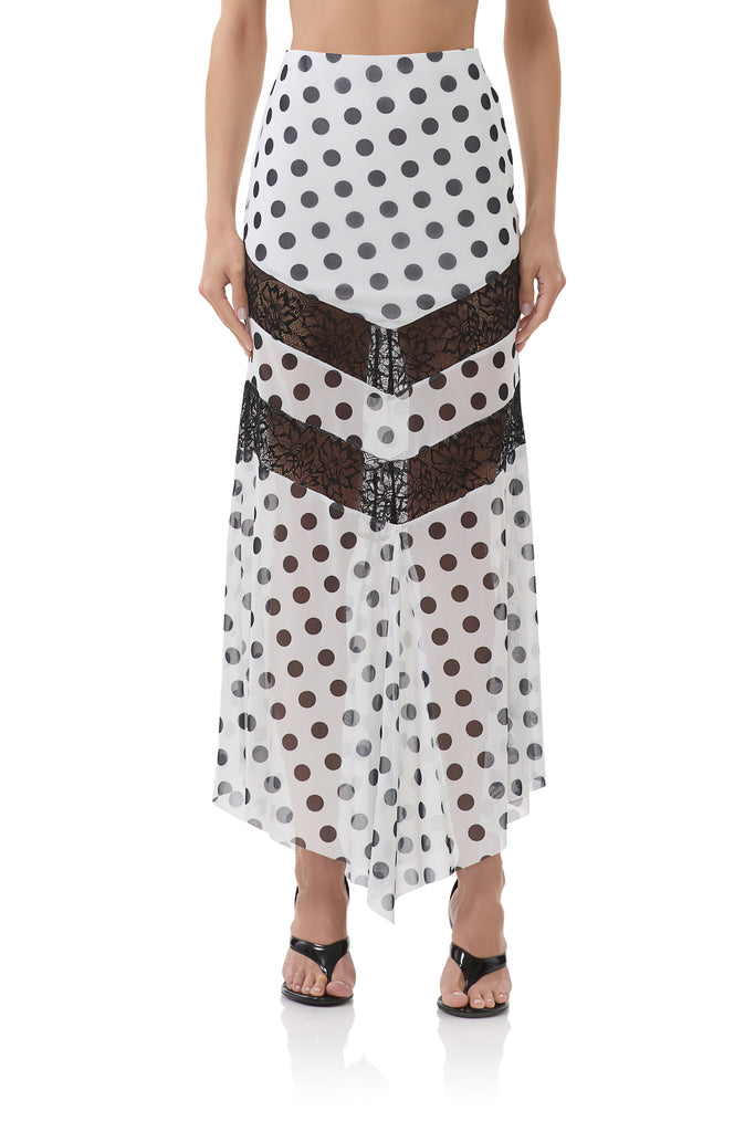 Say hello to Chelsea, a romantic take on the classic mermaid maxi skirt. With a flattering fitted waist, sheer lace panels, and a flowy mermaid-style hem, she moves with effortless grace. For a perfectly styled set, pair it with our romantic Arlington Top.