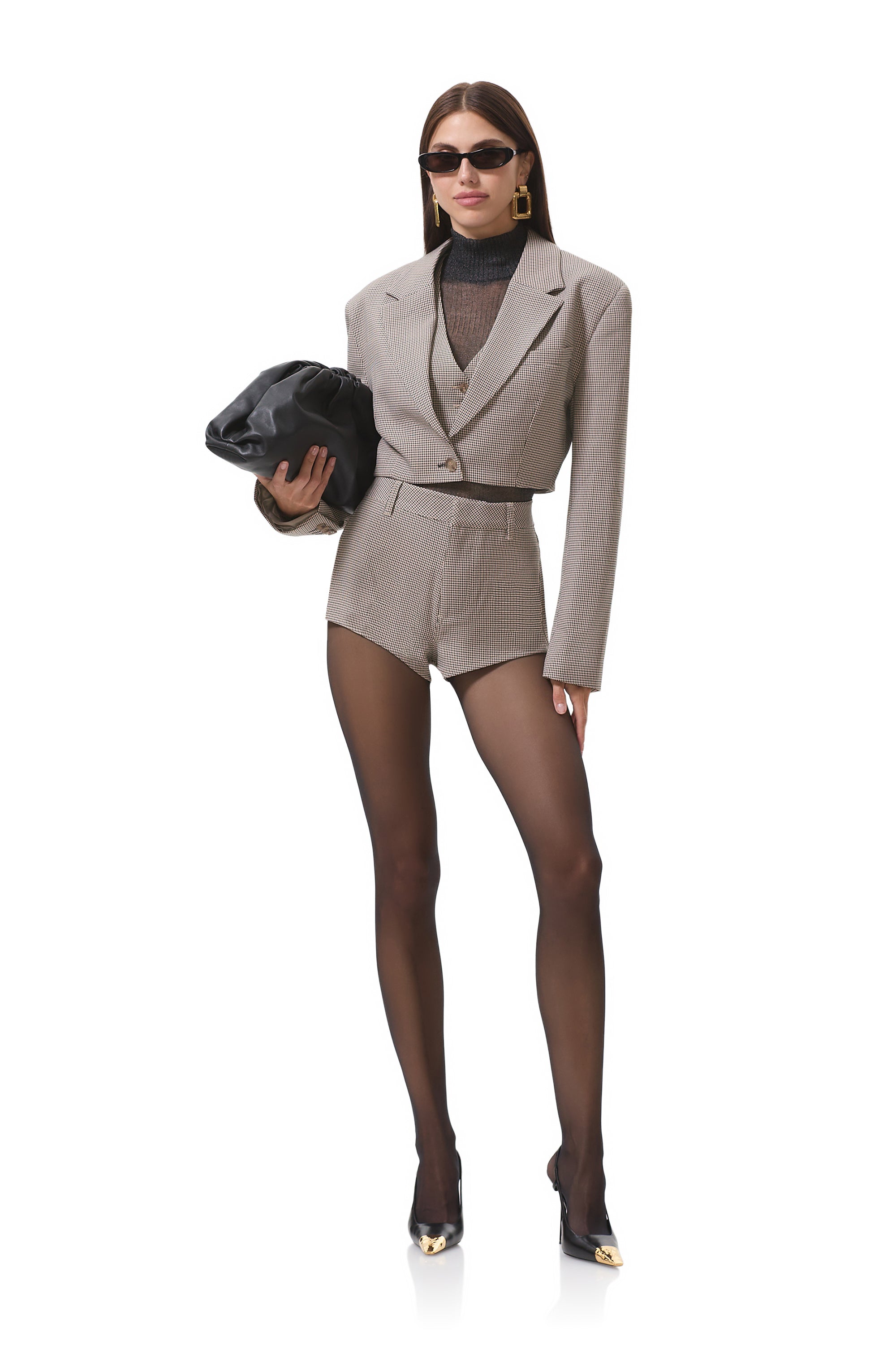 The Petra ultra crop blazer returns this fall season and captures the for the perfect cinched silhouette. Petra is perfect for layering and designed with a statement shoulder and a button front closure, meant to be paired with the matching Daryl Vest and Beckham Short for a stylish coordinated look.