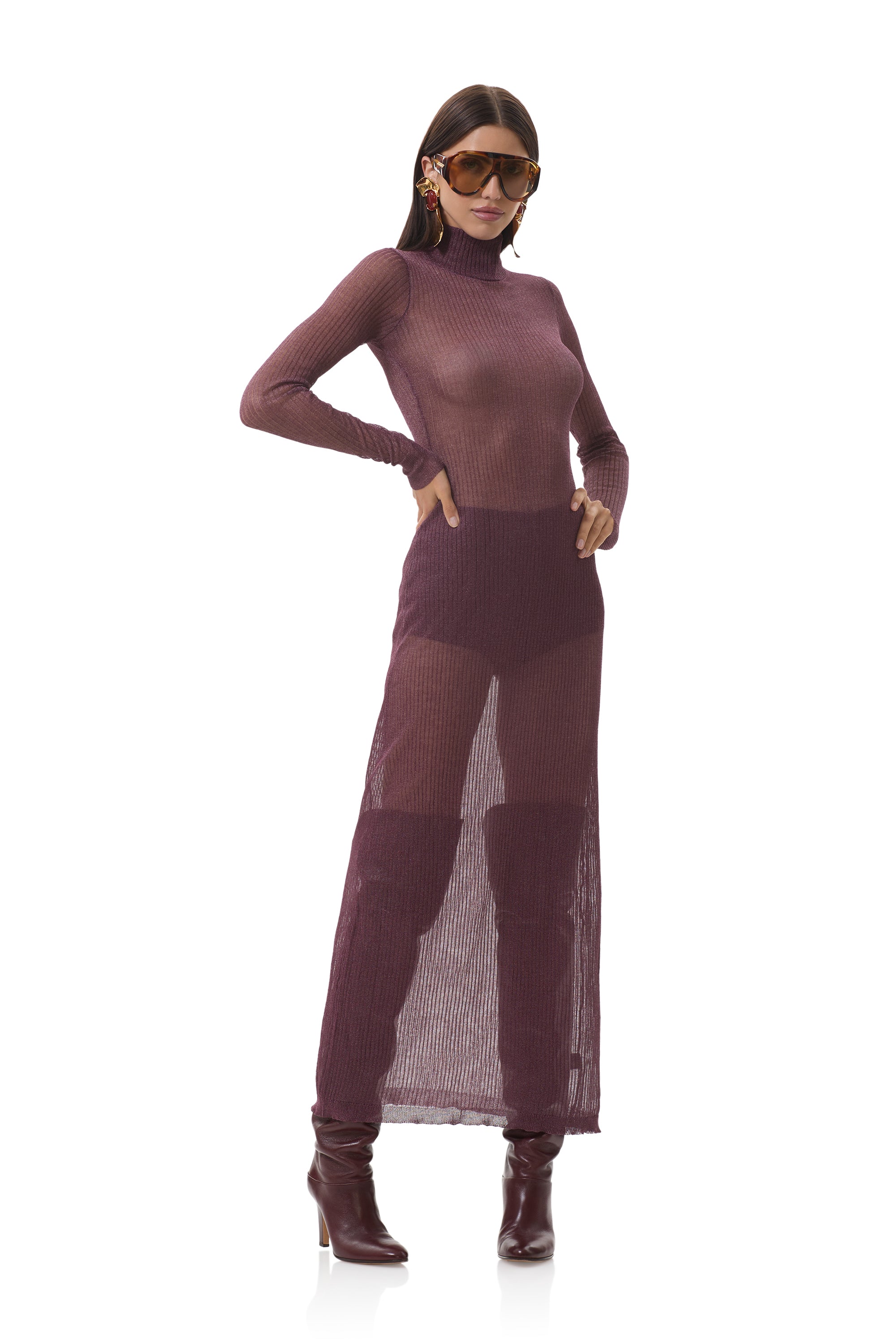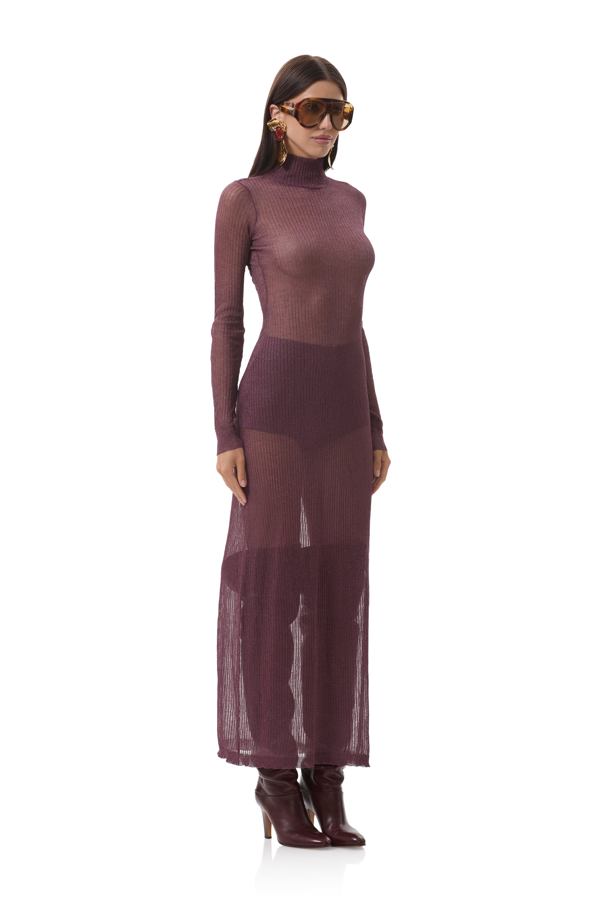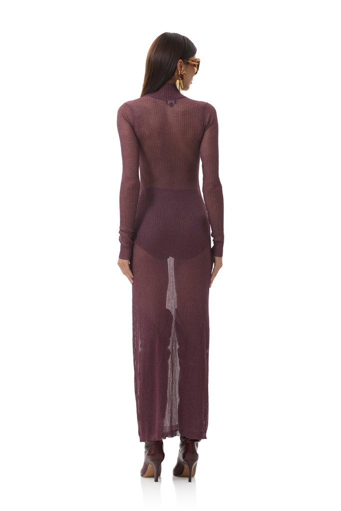 Vilas Dress is a show stopper. This is the ultimate sweater dress with a wide sweep for drama and a matching hot short. Vilas is designed our newest shimmering sweater rib fabrication, she's semi sheer, with a sparkly finish.
