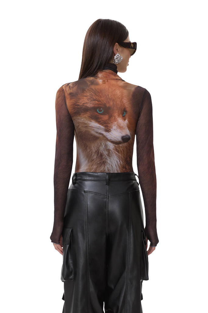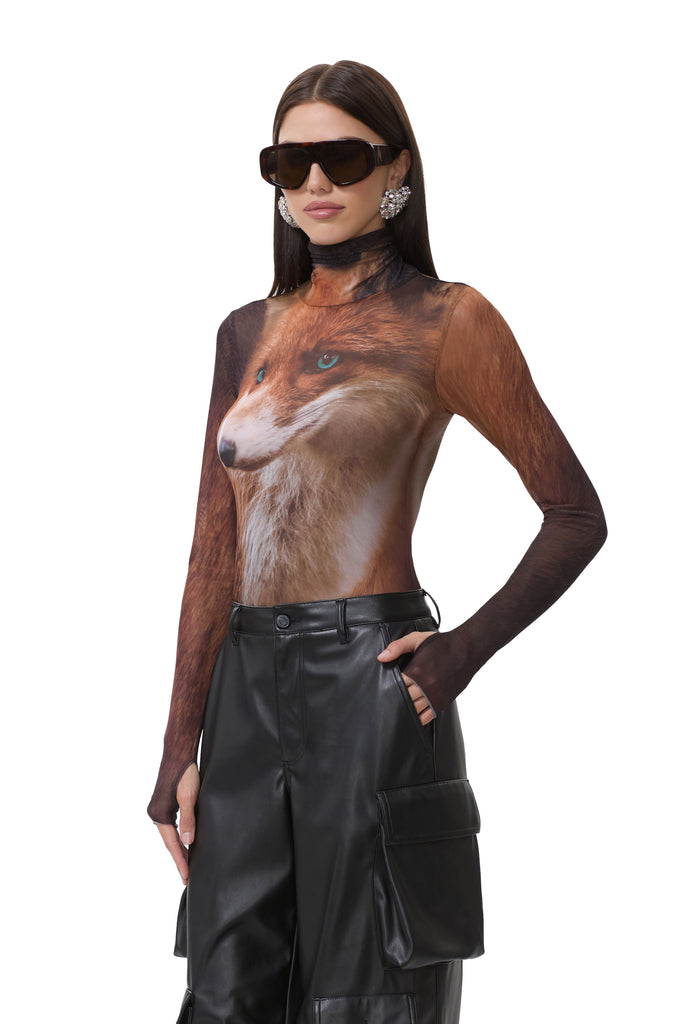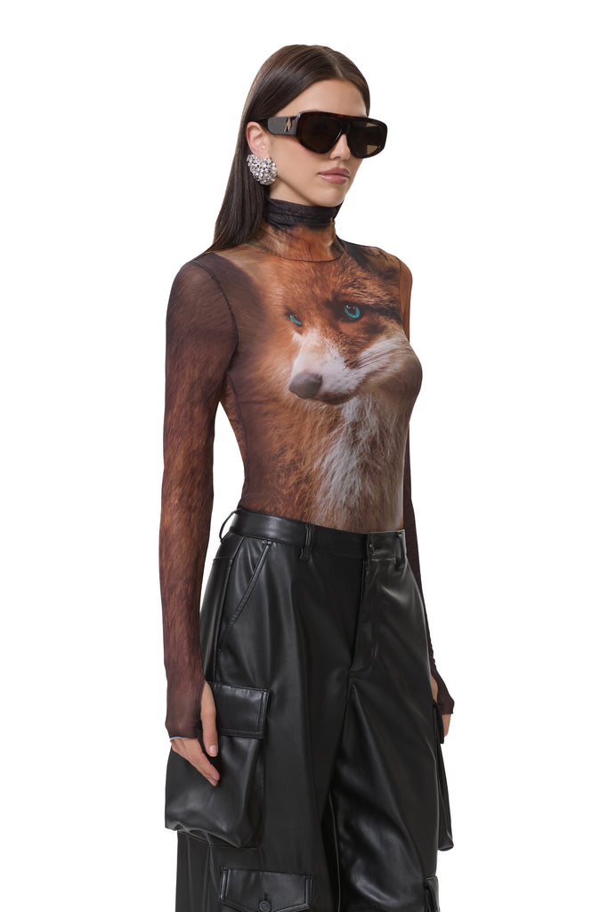 The Zadie top features a sheer mesh material and street-style thumbholes that lend an edgy update to off-duty style. She comes in our newest Foxy Face print.